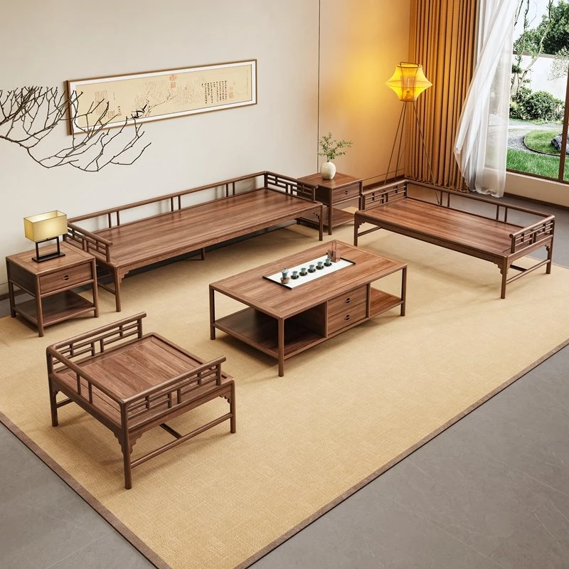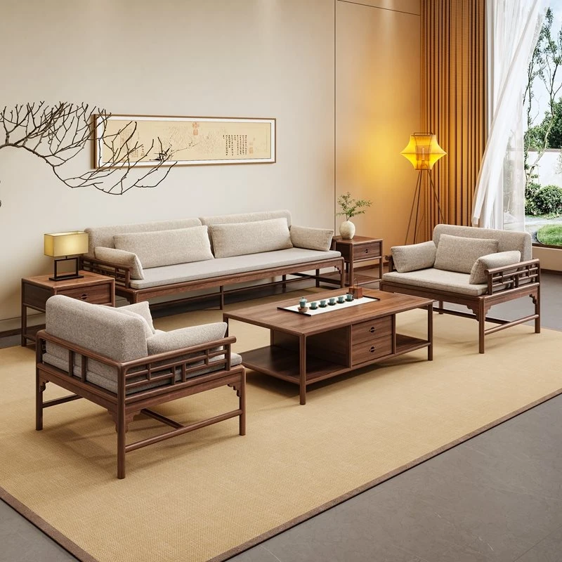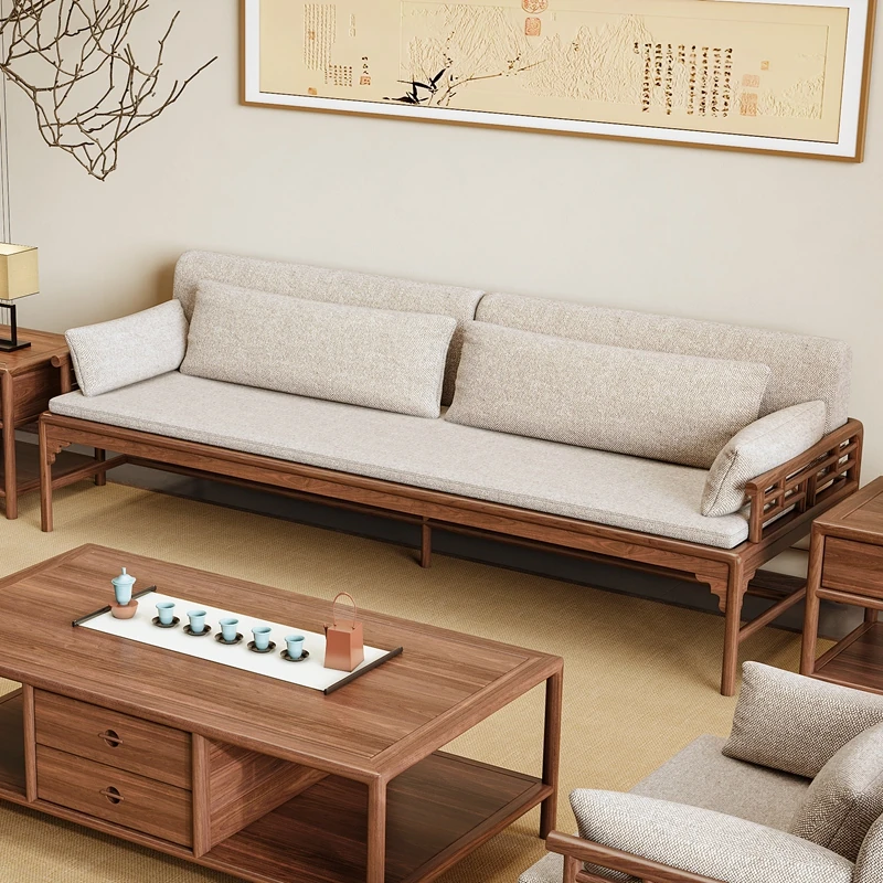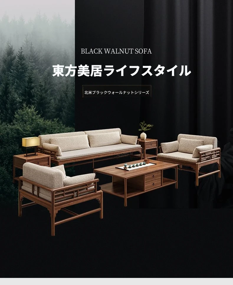 天壇家具 新中式 北米産 ブラックウォールナット ソファー 宋式美学が香るオフィスや禅の雰囲気漂う別荘のリビングに最適な一品!