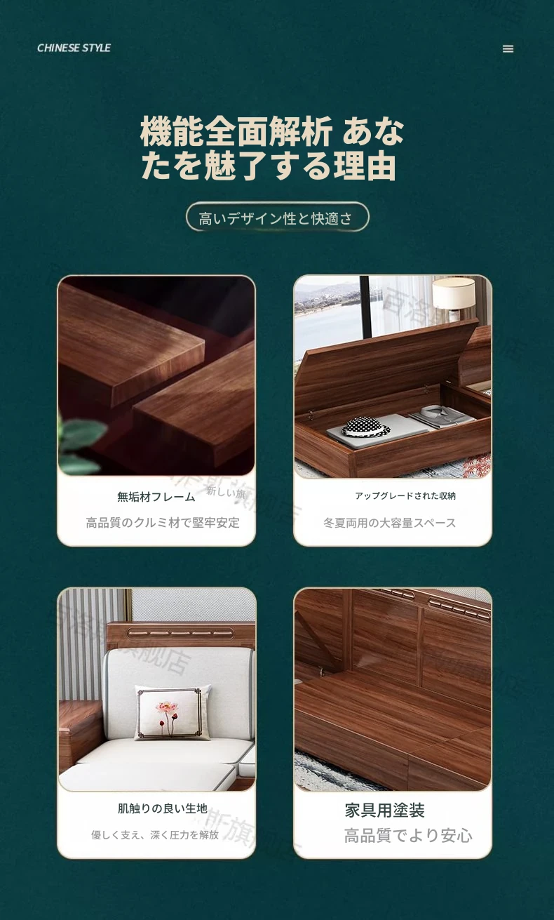 天壇家具 ウォールナット材 大小兼用リビング用 無垢木製ストレージソファ 新中式 冬夏兼用ストレートソファ - 高品質でスタイリッシュな空間を演出し、収納力も抜群!