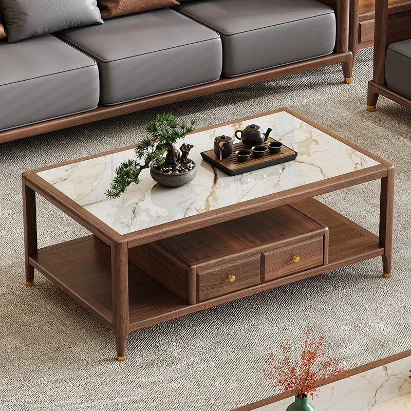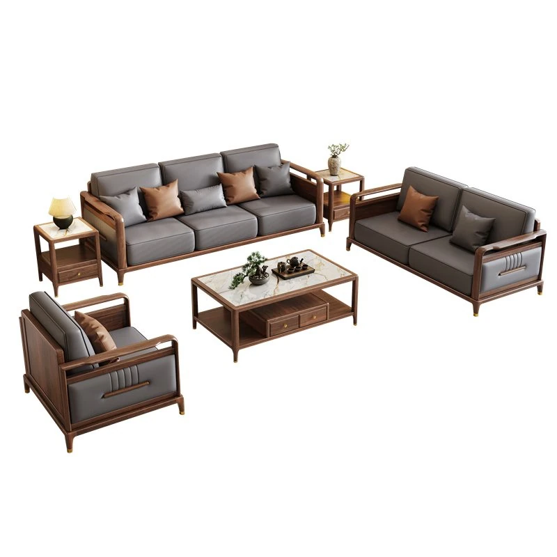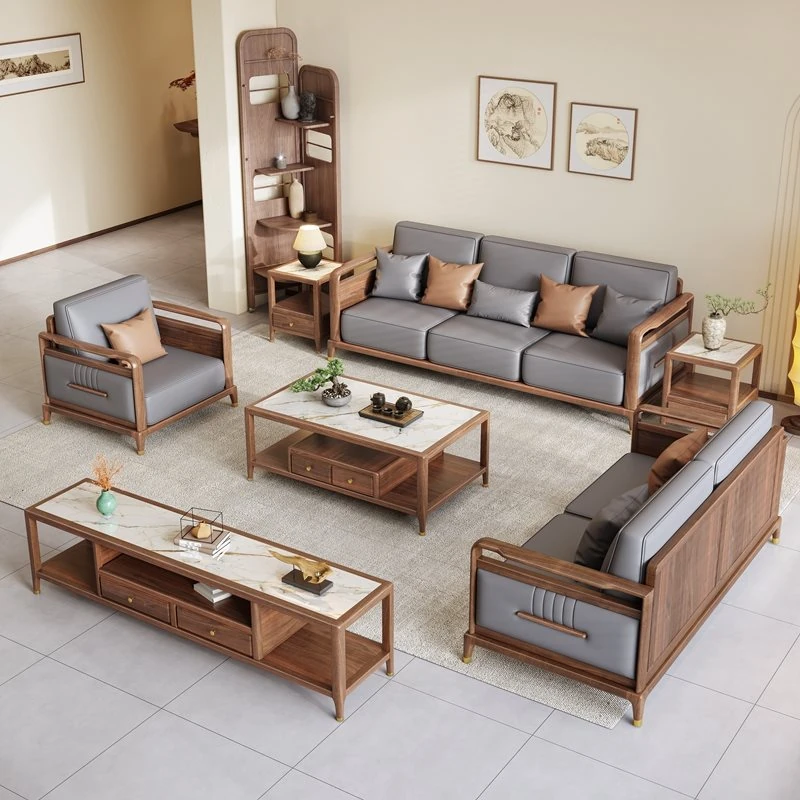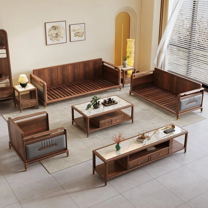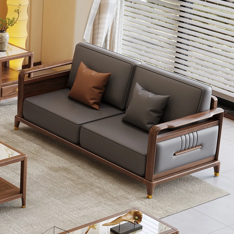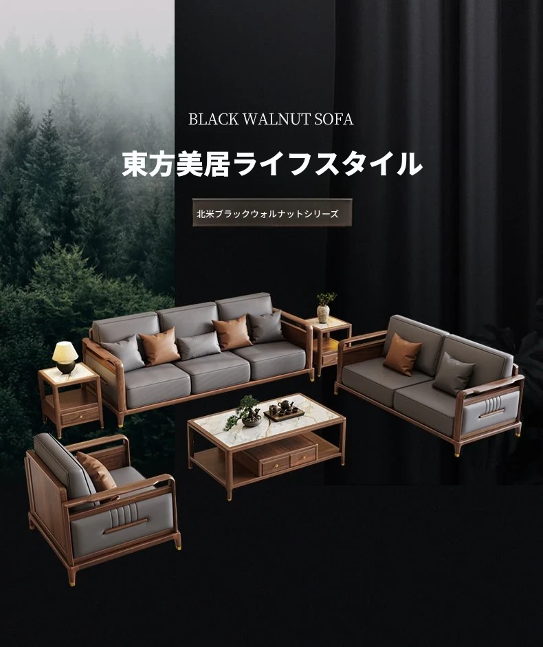天壇家具の新しい中式スタイル 北米産ブラックウォールナットの本革ソファ - 宋の美学と禅の趣を感じる民宿や別荘、オフィスに最適!