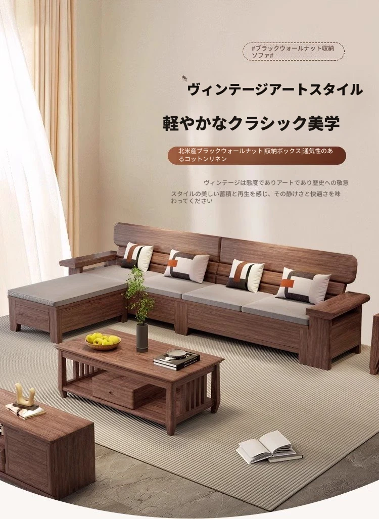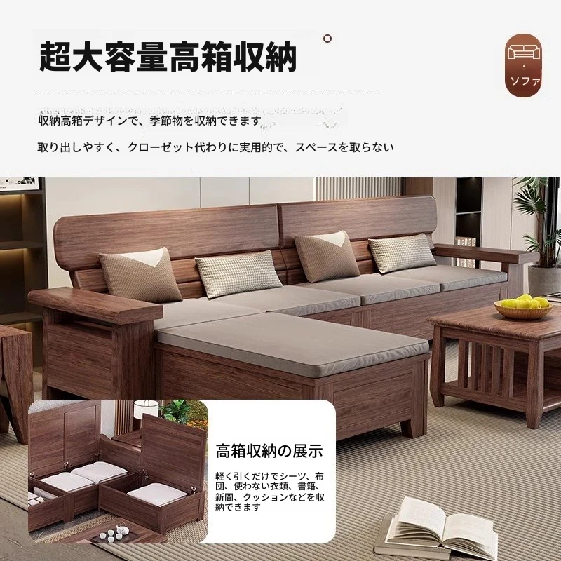 天壇家具 新中式 レトロ ブラックウォルナット 無垢材 ソファー 貴妃型 家庭用 リビング 小型収納付き 電動タイプ
