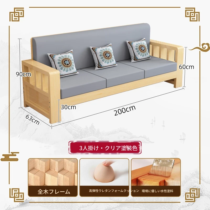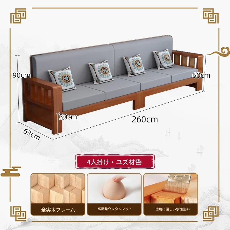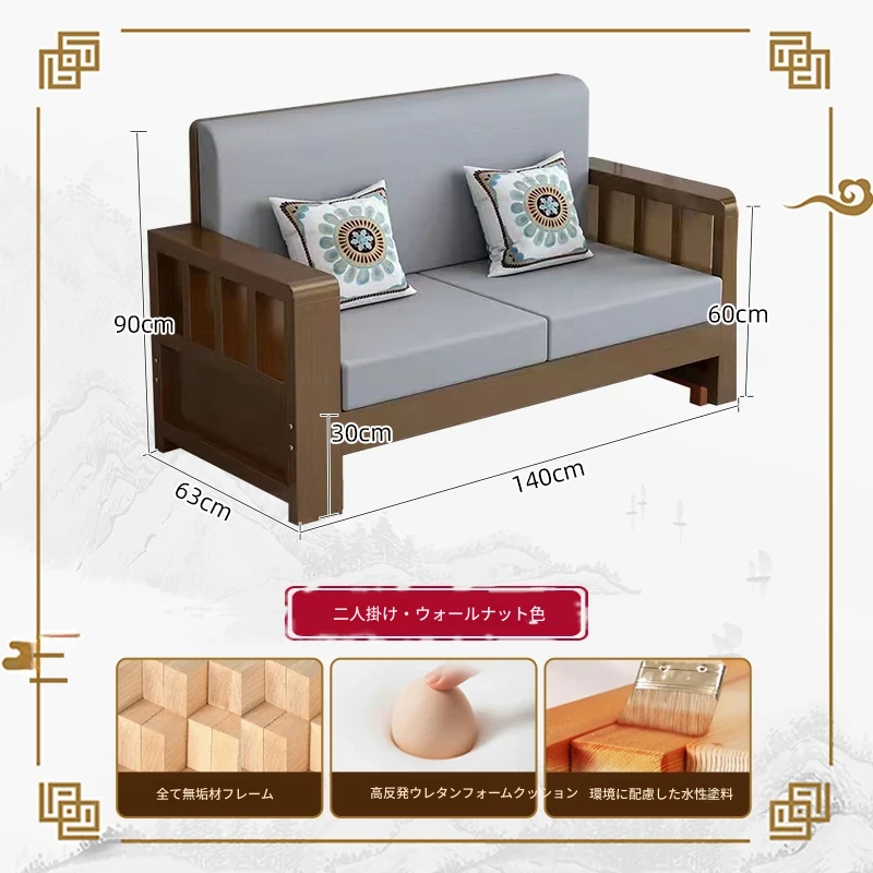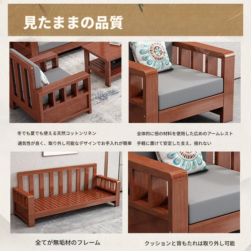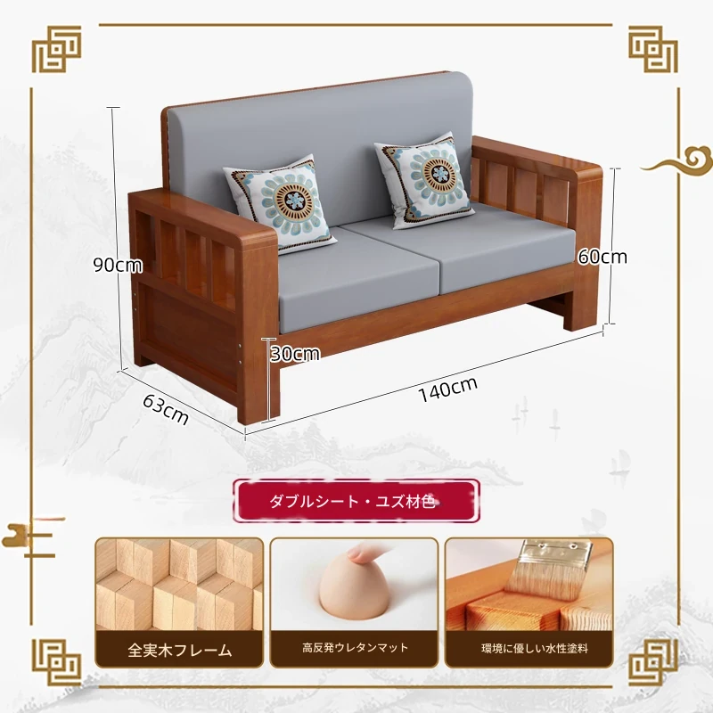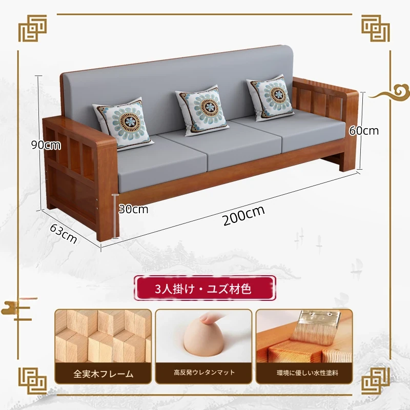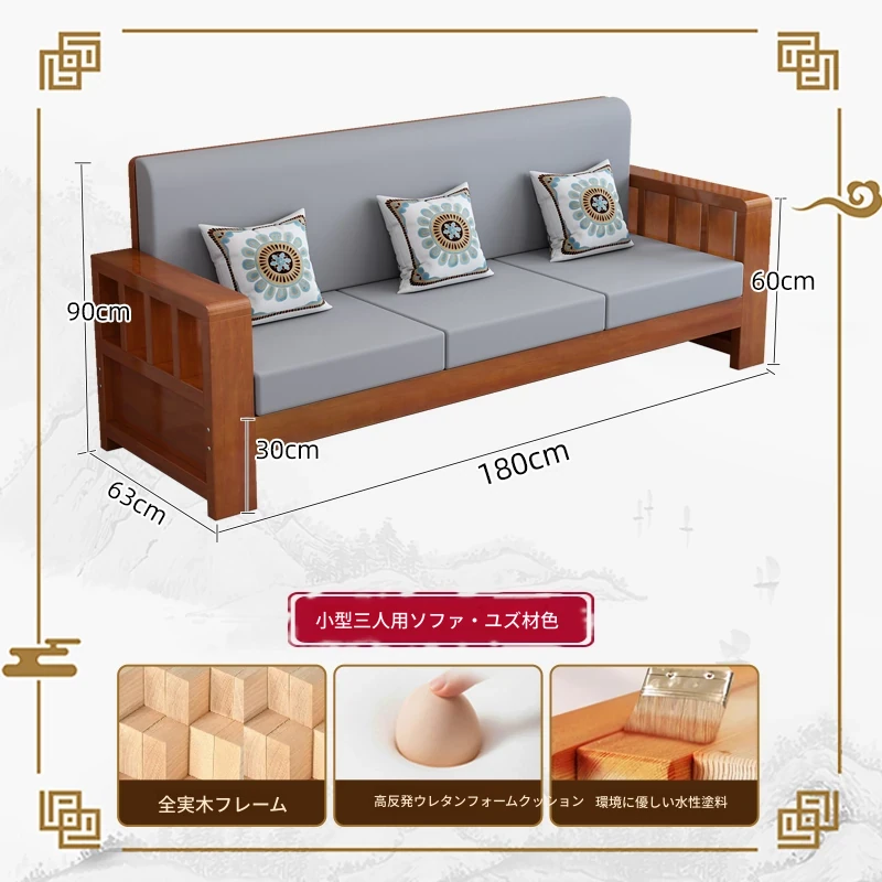 天壇家具の新作、2024年版!小型住宅にぴったりな実木製3人掛けソファ。冬夏兼用の中華風デザインで、快適なリビング空間を演出します。家庭用にも最適!