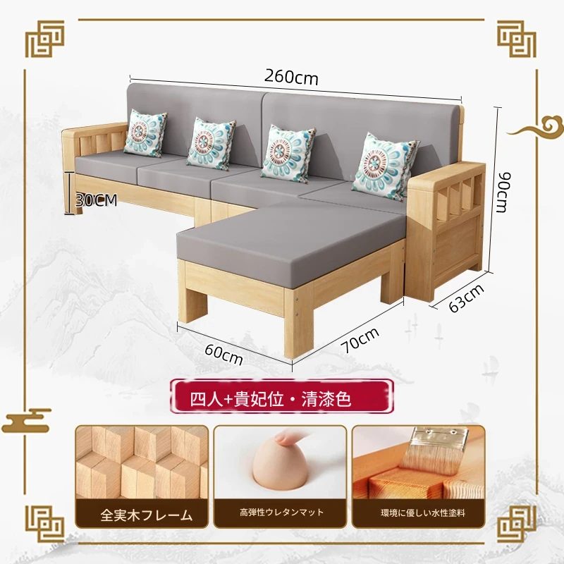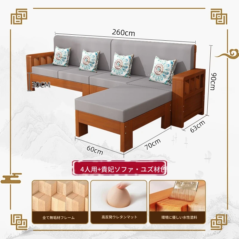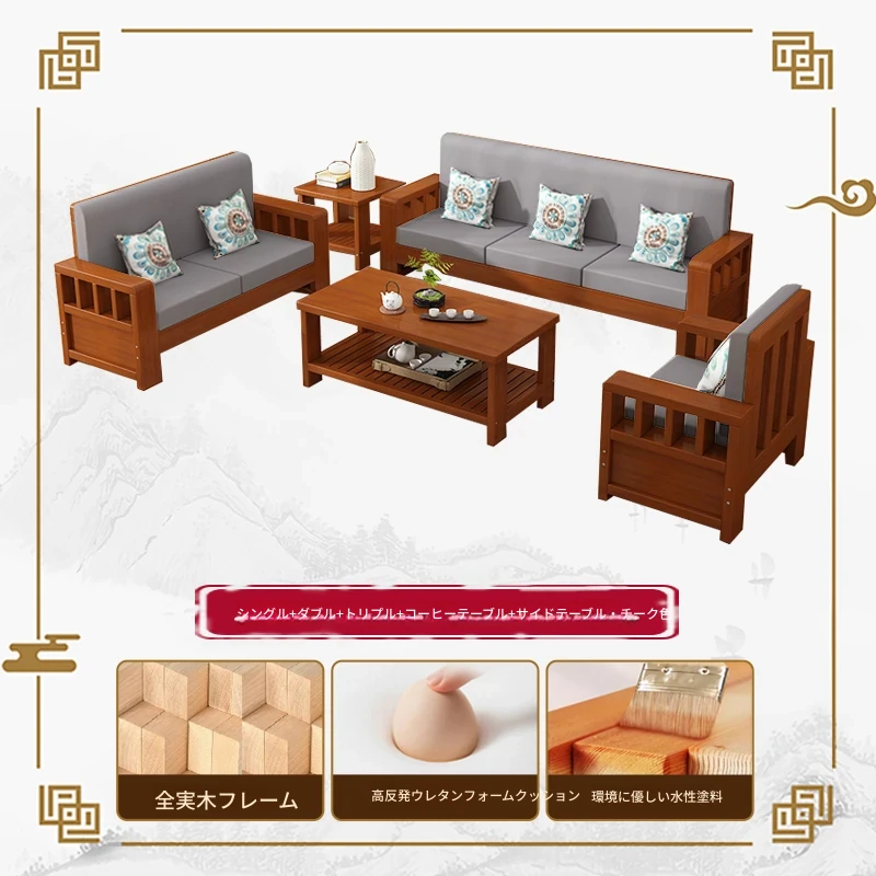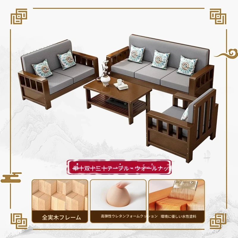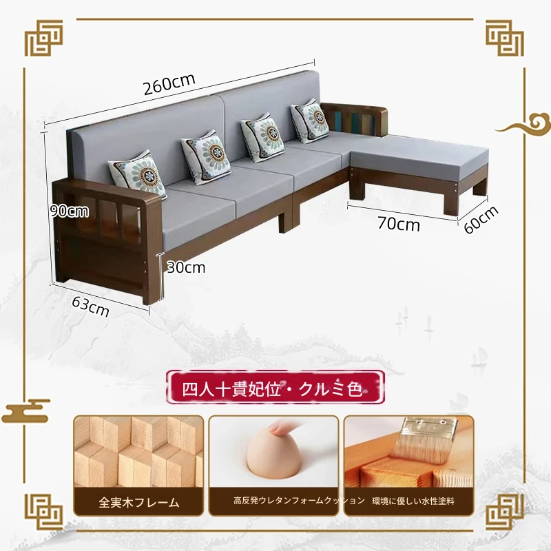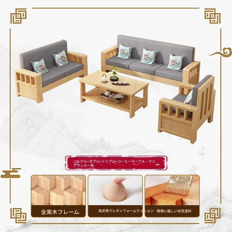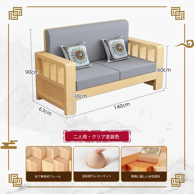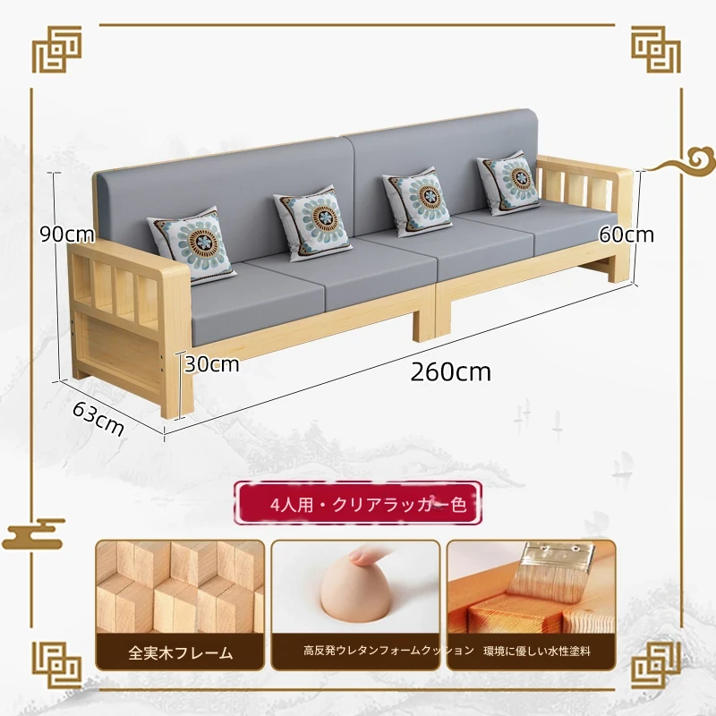 天壇家具の新作、2024年版!小型住宅にぴったりな実木製3人掛けソファ。冬夏兼用の中華風デザインで、快適なリビング空間を演出します。家庭用にも最適!