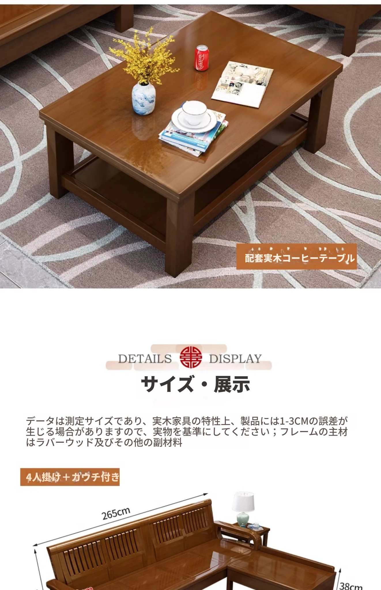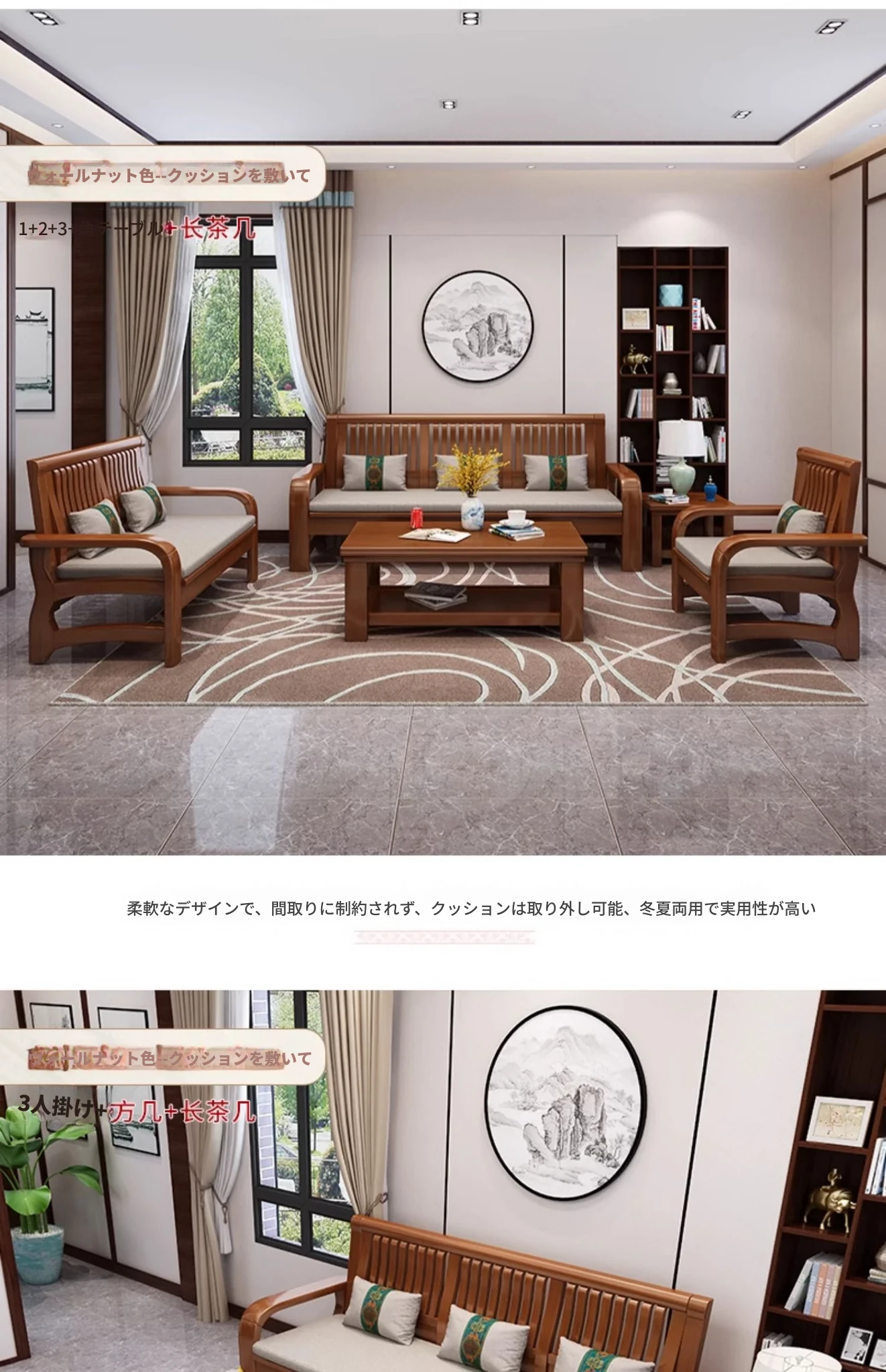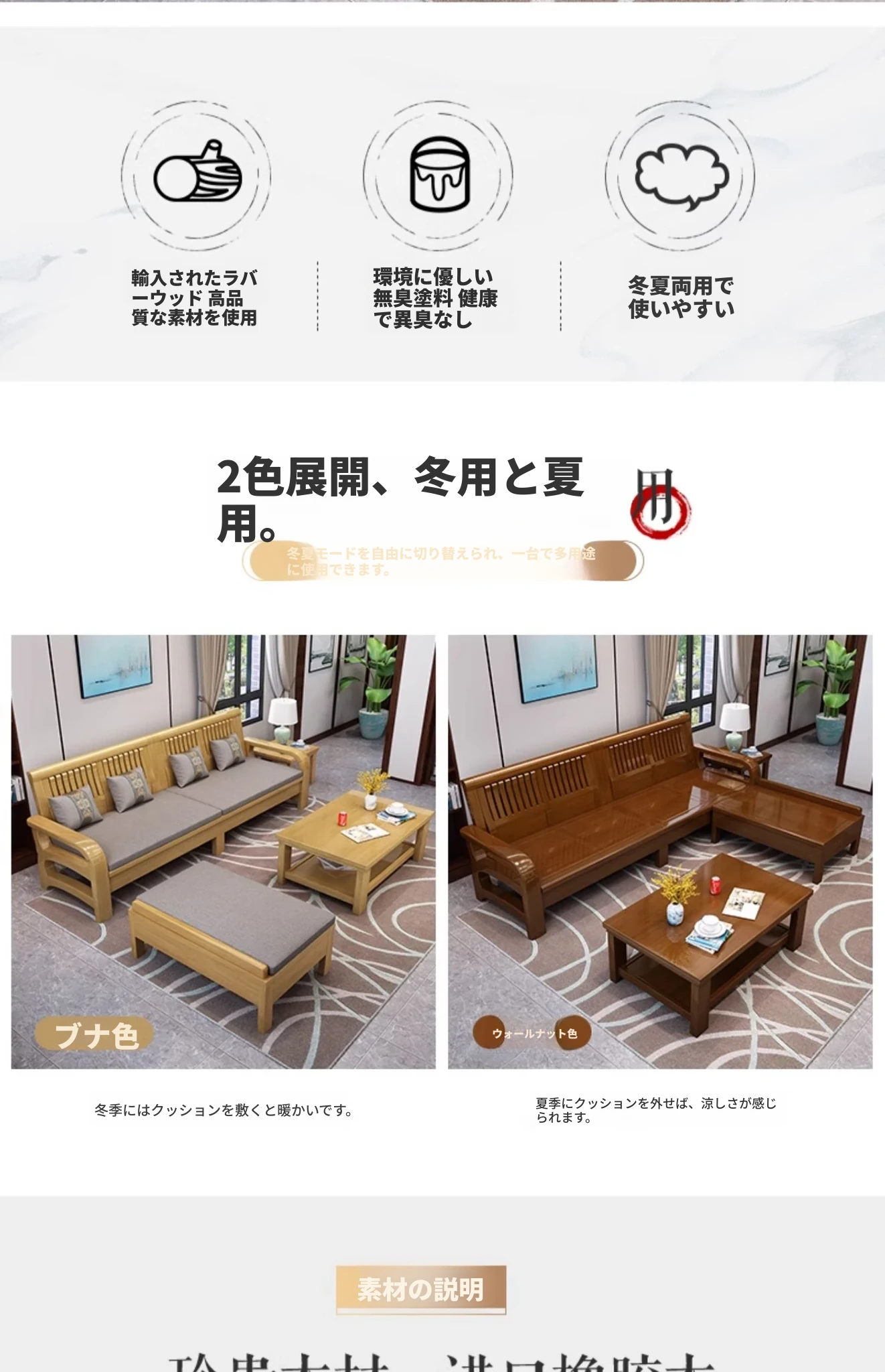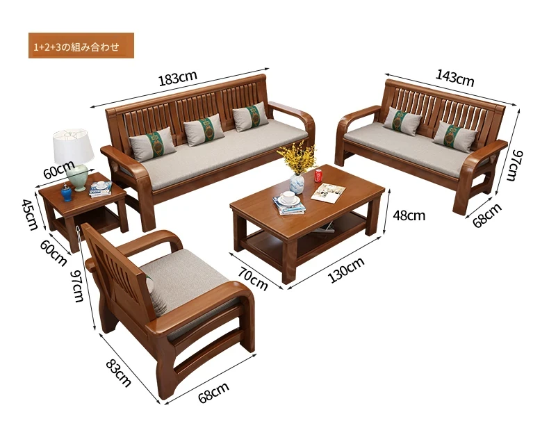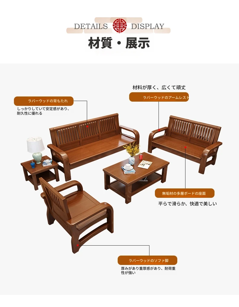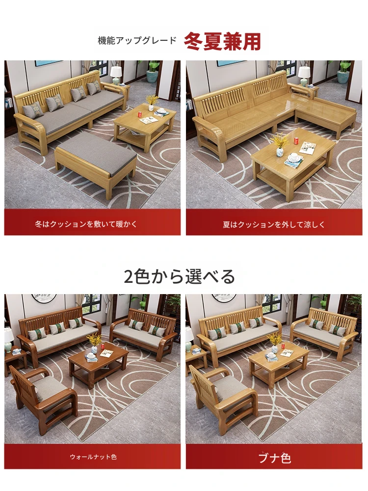 冬夏使える実木製ソファ!コンパクトな小型ハウス向け、角型デザインの貴妃ソファ。3人掛け・4人掛けの新中式スタイルで、木の温もりを感じる快適な空間を演出します。