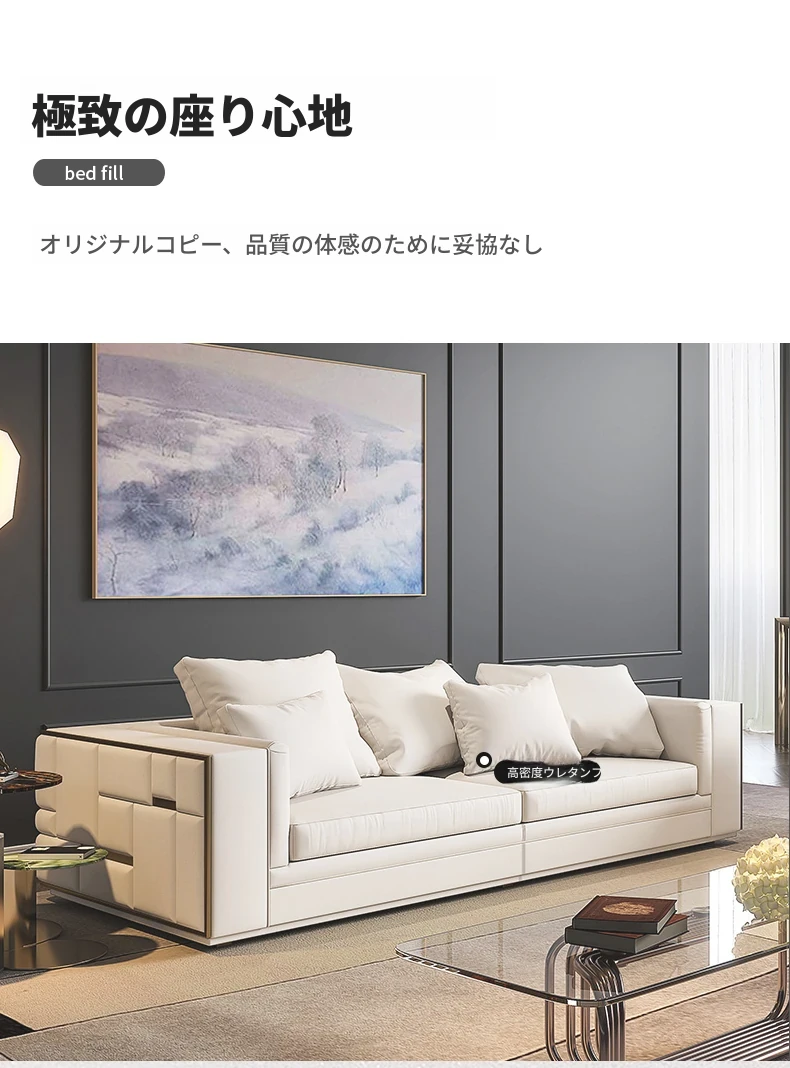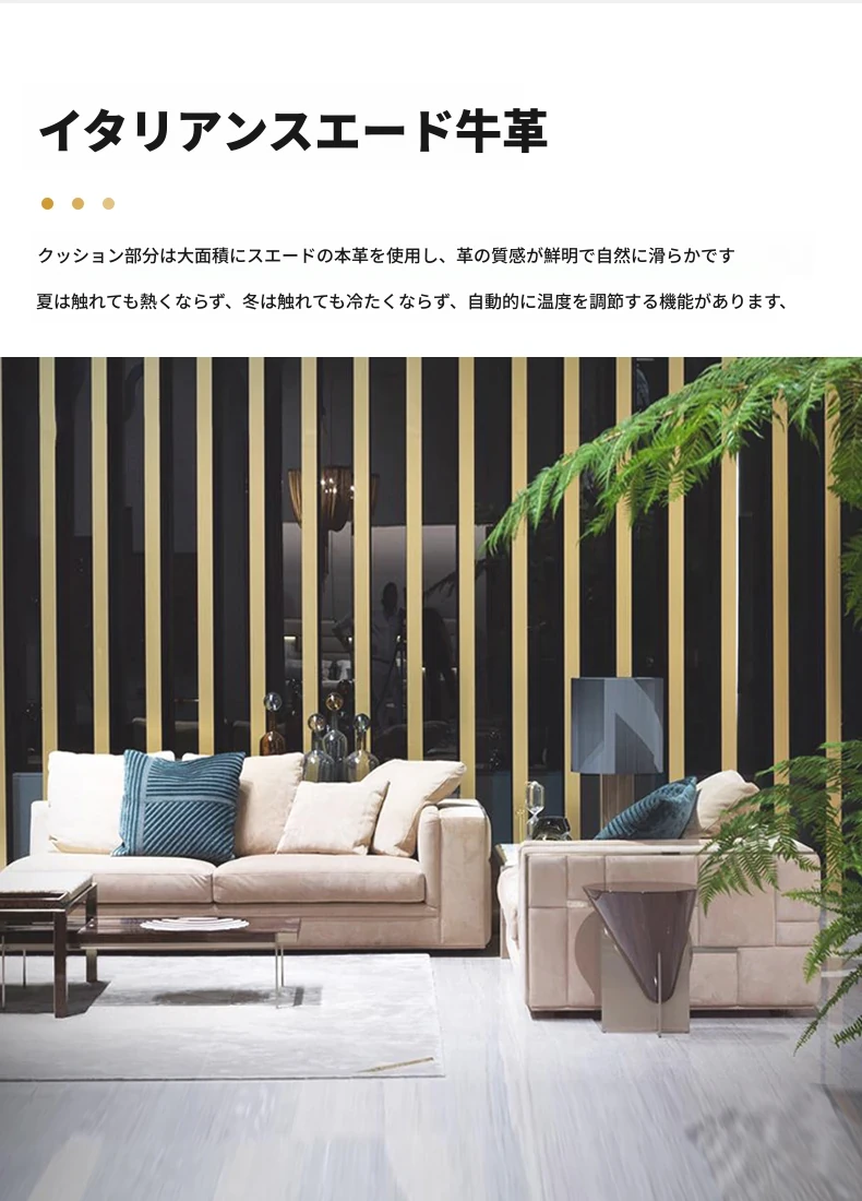 ヴィラ・ヴィジョネール風のソファ|マット仕上げの本革イタリアンミニマルデザイン|軽やかなラグジュアリー感漂う香港スタイルの皮革ソファ