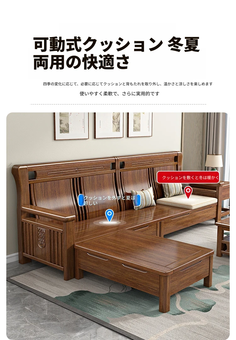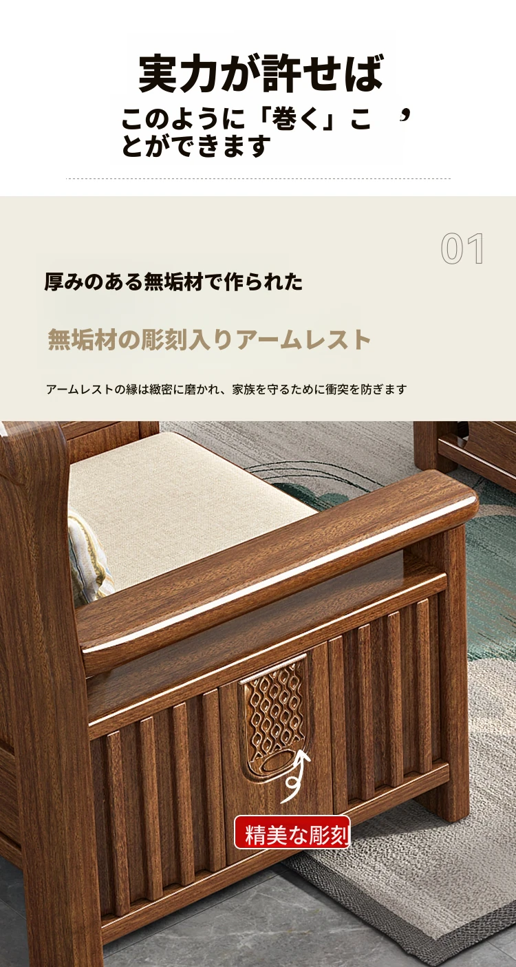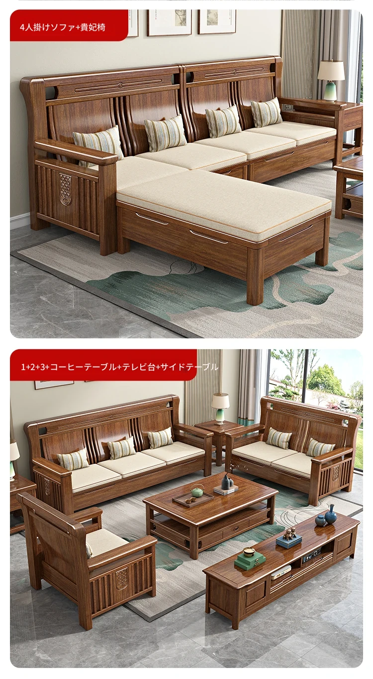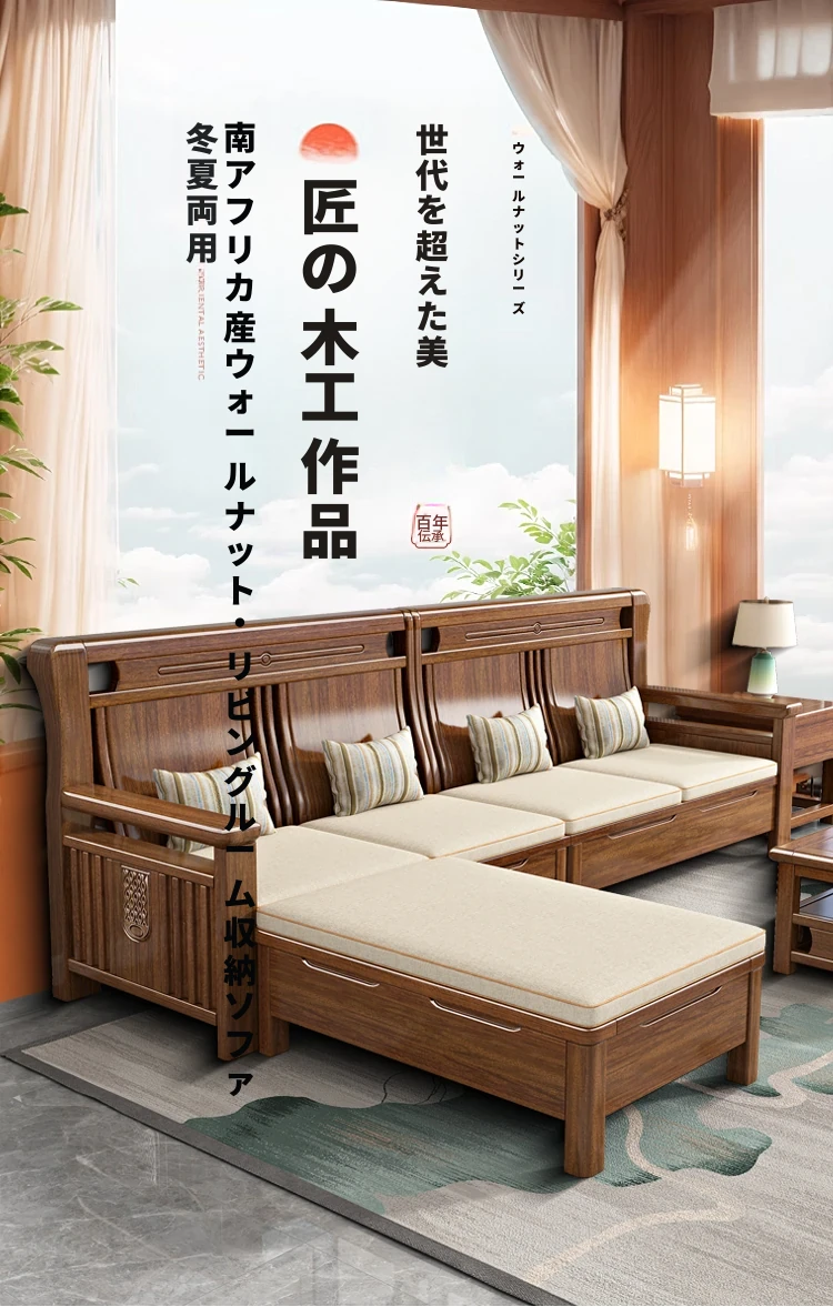 ウォールナット無垢材中華スタイルソファセット - 大小様々な部屋に最適!冬も夏も快適に使える全無垢材の高品質ソファ。佛山の職人技で仕上げた優雅な家具。