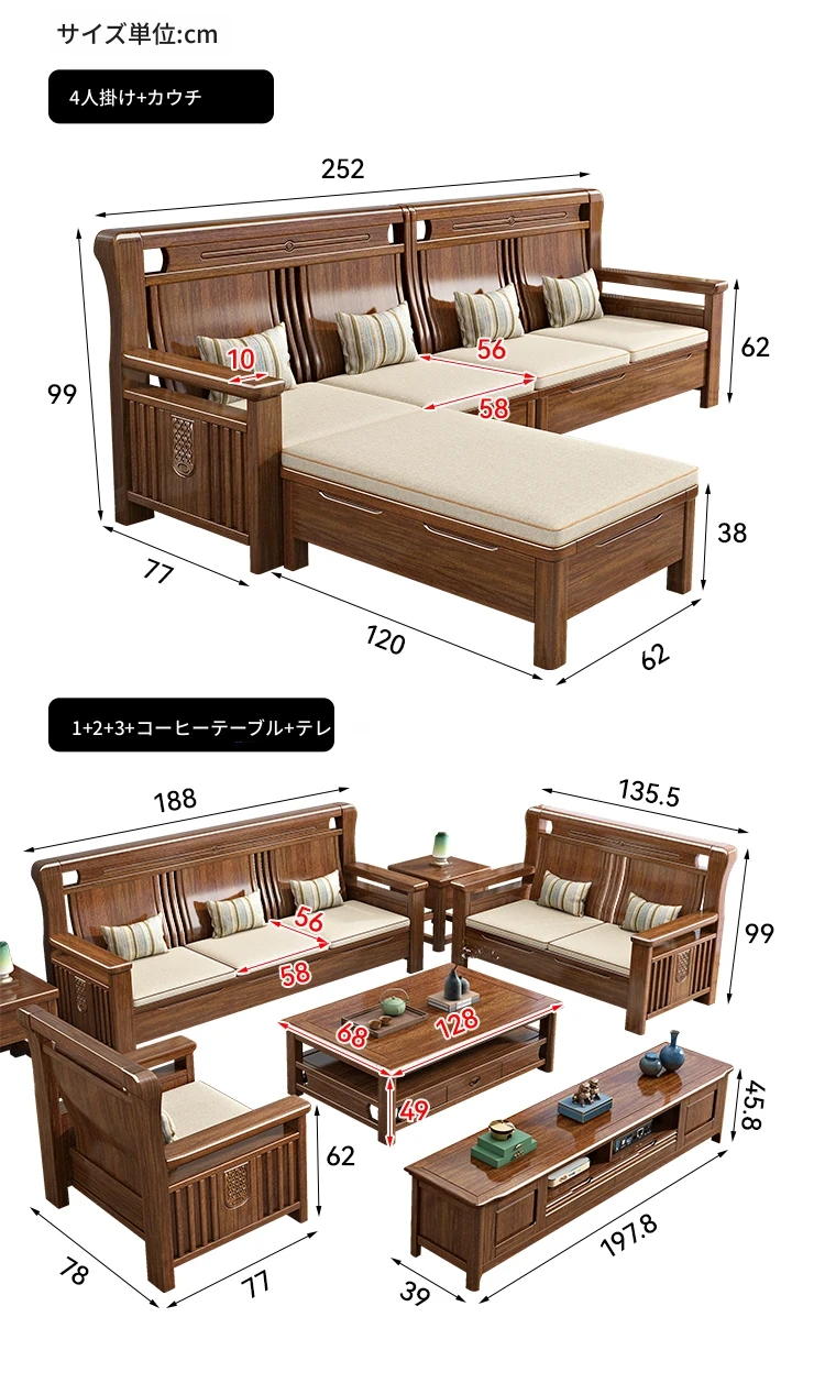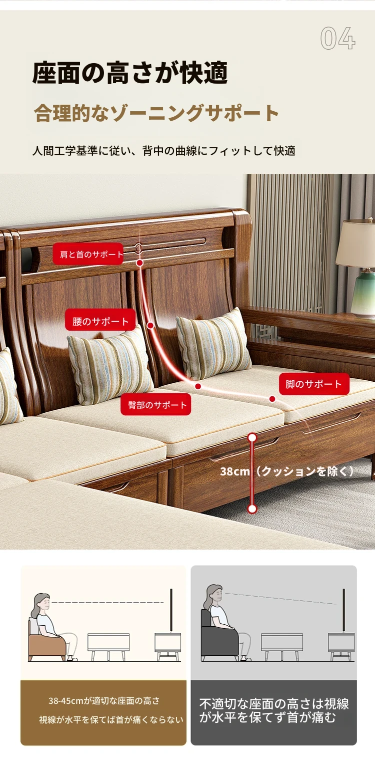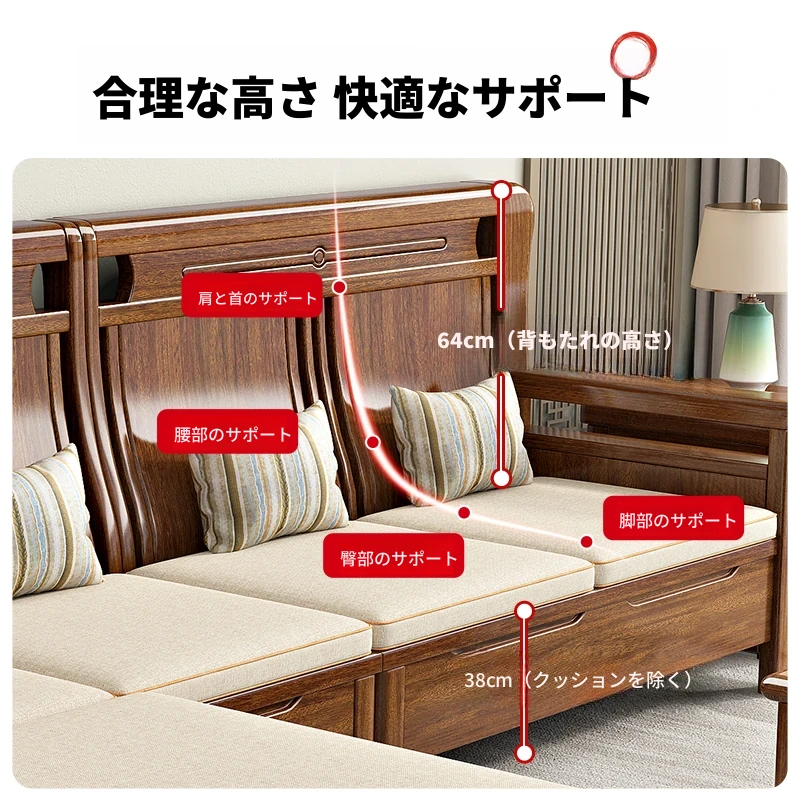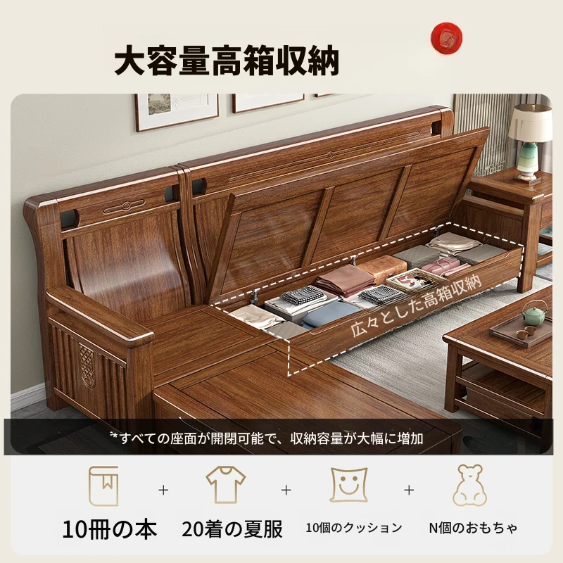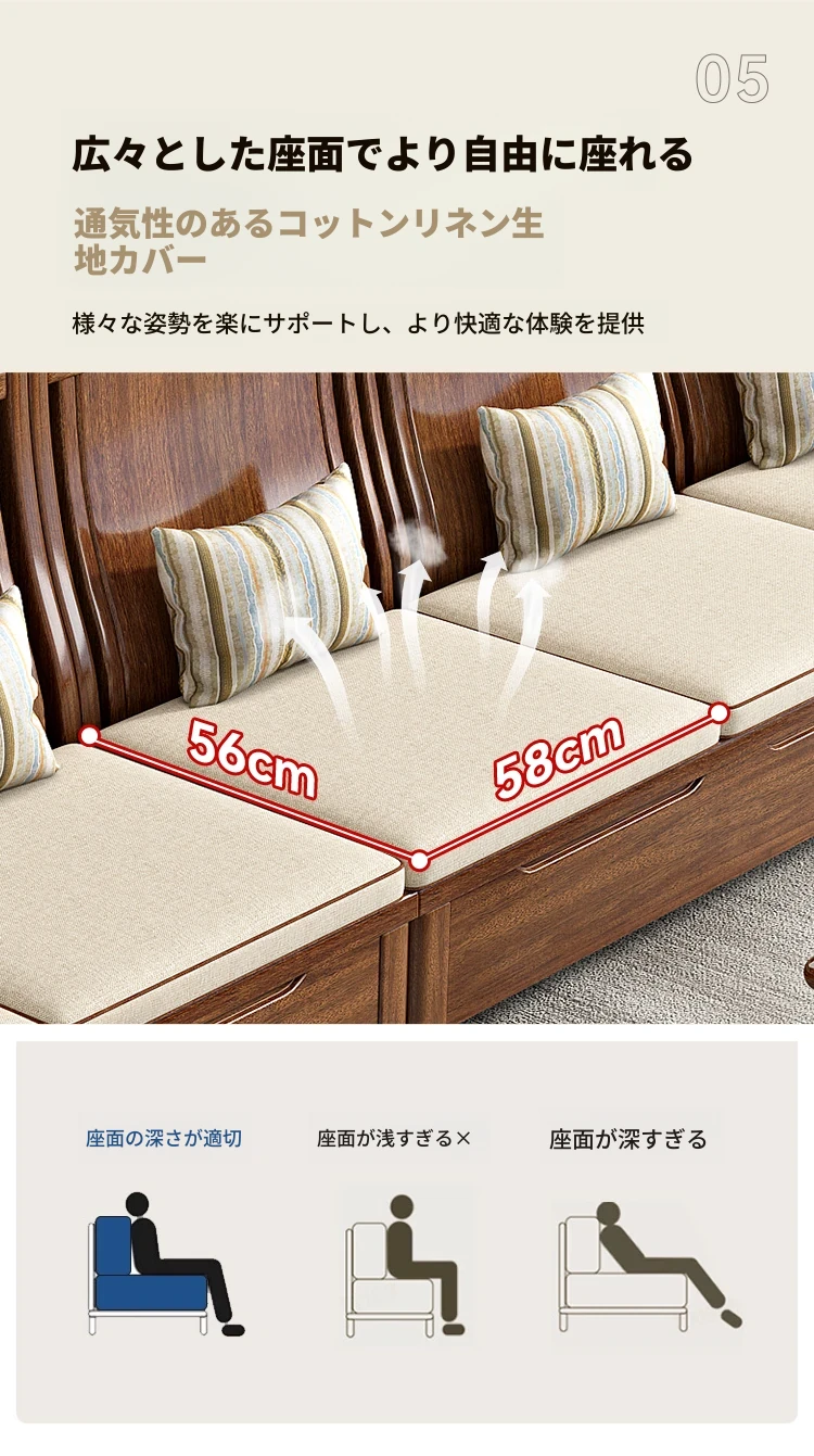ウォールナット無垢材中華スタイルソファセット - 大小様々な部屋に最適!冬も夏も快適に使える全無垢材の高品質ソファ。佛山の職人技で仕上げた優雅な家具。