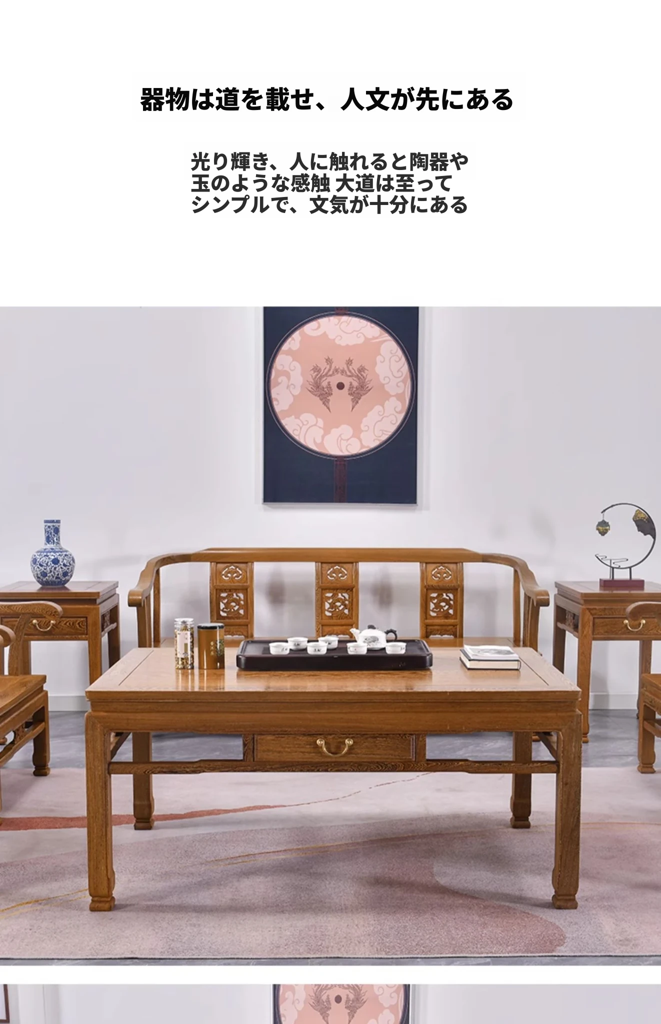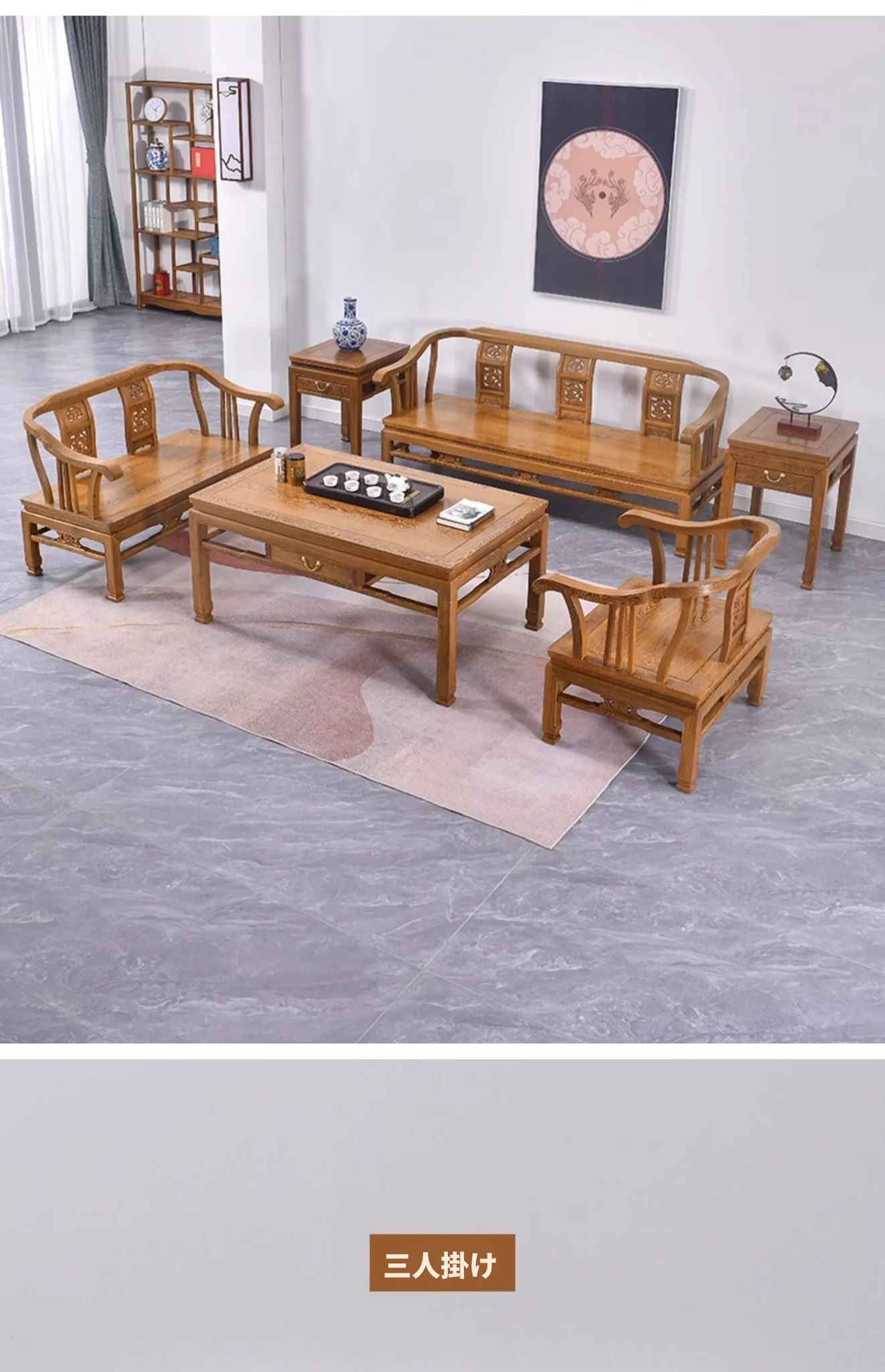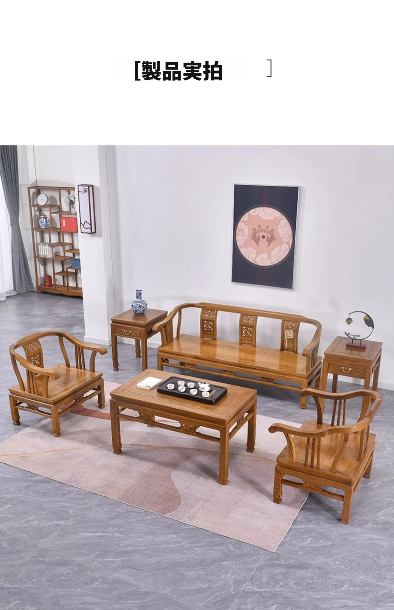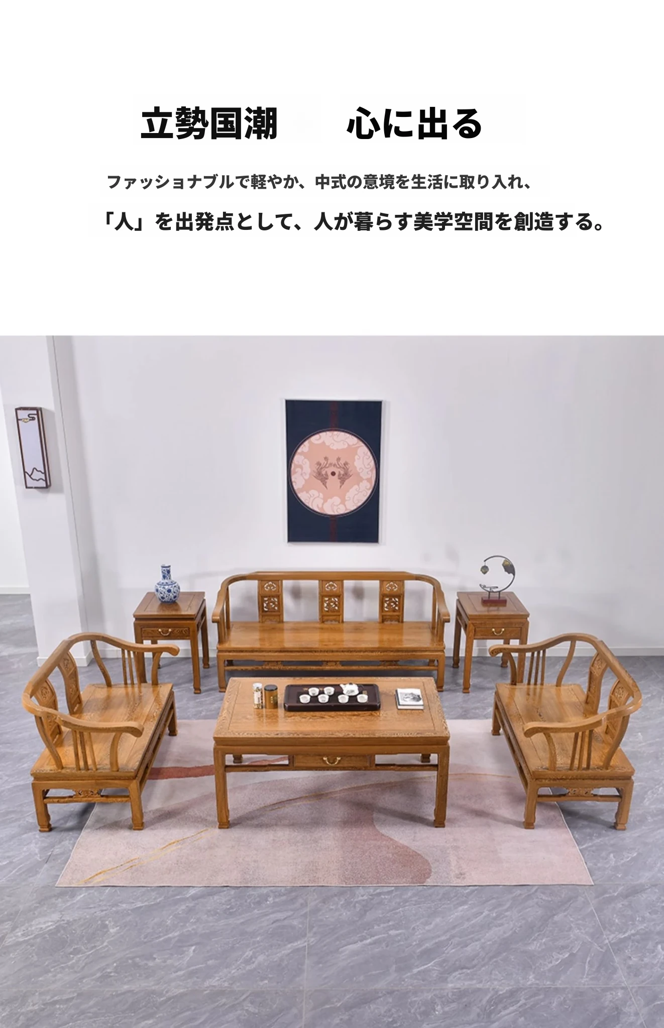 芸名天下 高級紅木家具 鳥の羽木製ソファセット 新中式スタイル テーブルとチェアのコンビネーション リビングルーム用 3人掛けソファの贅沢なデザインで、あなたの空間を華やかに演出します!