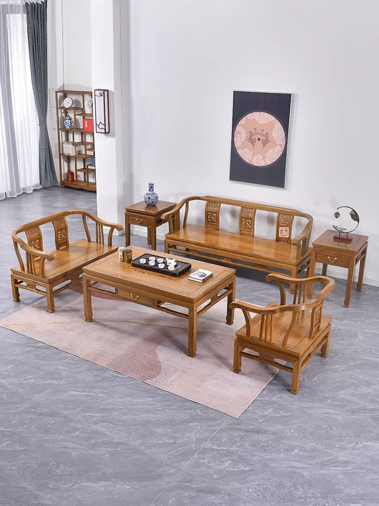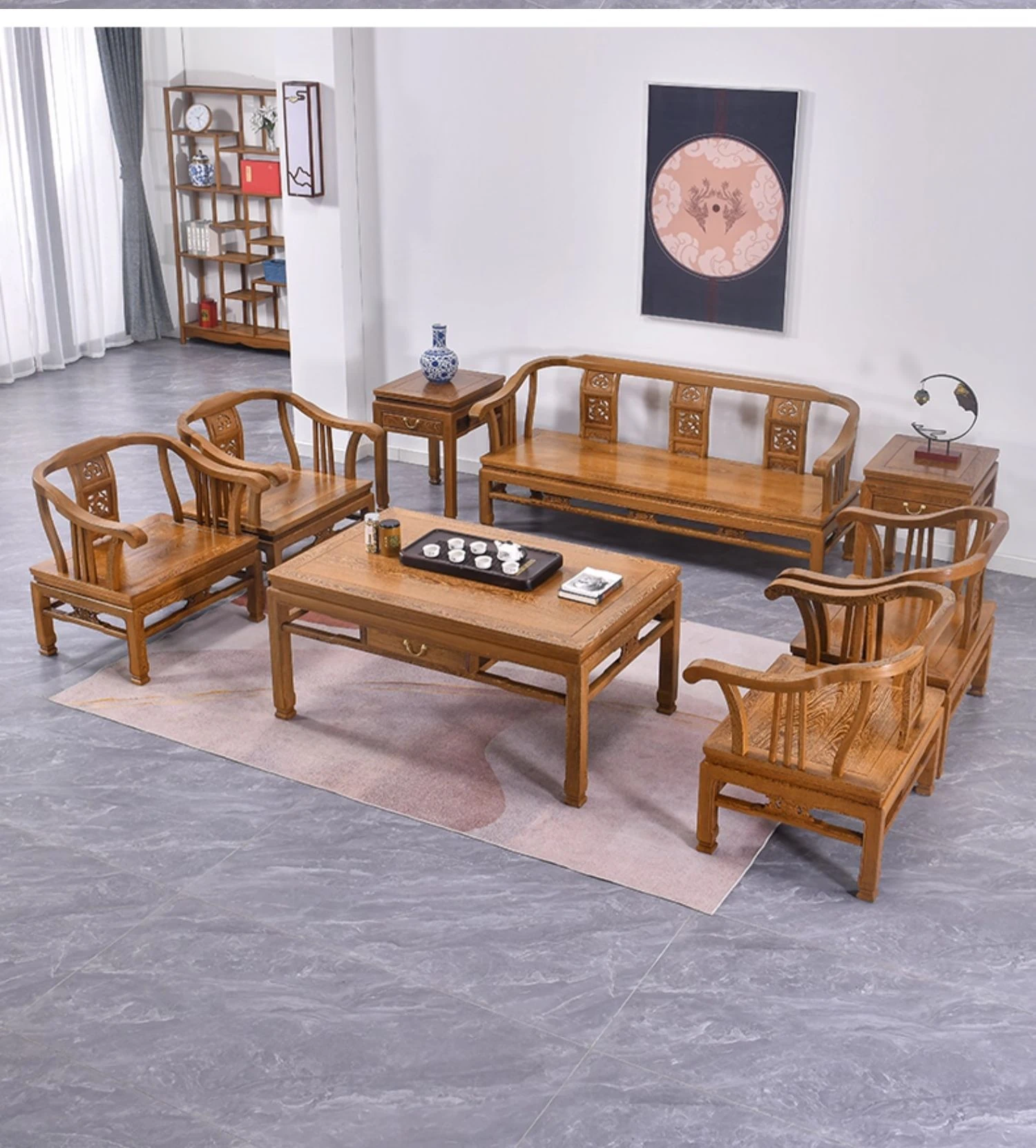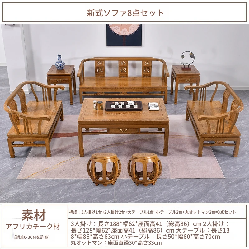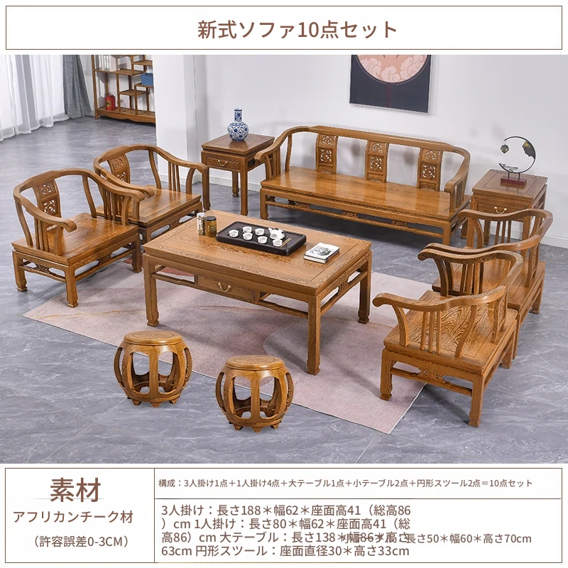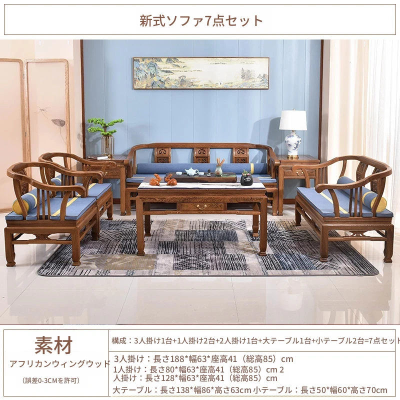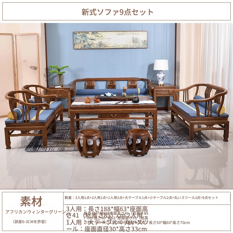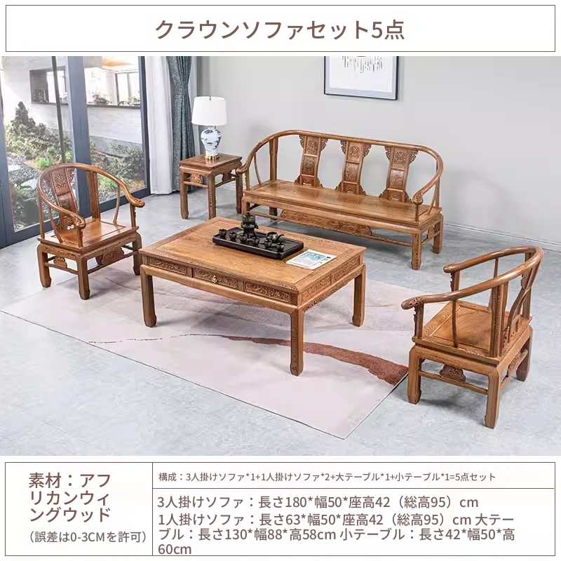 芸名天下 高級紅木家具 鳥の羽木製ソファセット 新中式スタイル テーブルとチェアのコンビネーション リビングルーム用 3人掛けソファの贅沢なデザインで、あなたの空間を華やかに演出します!