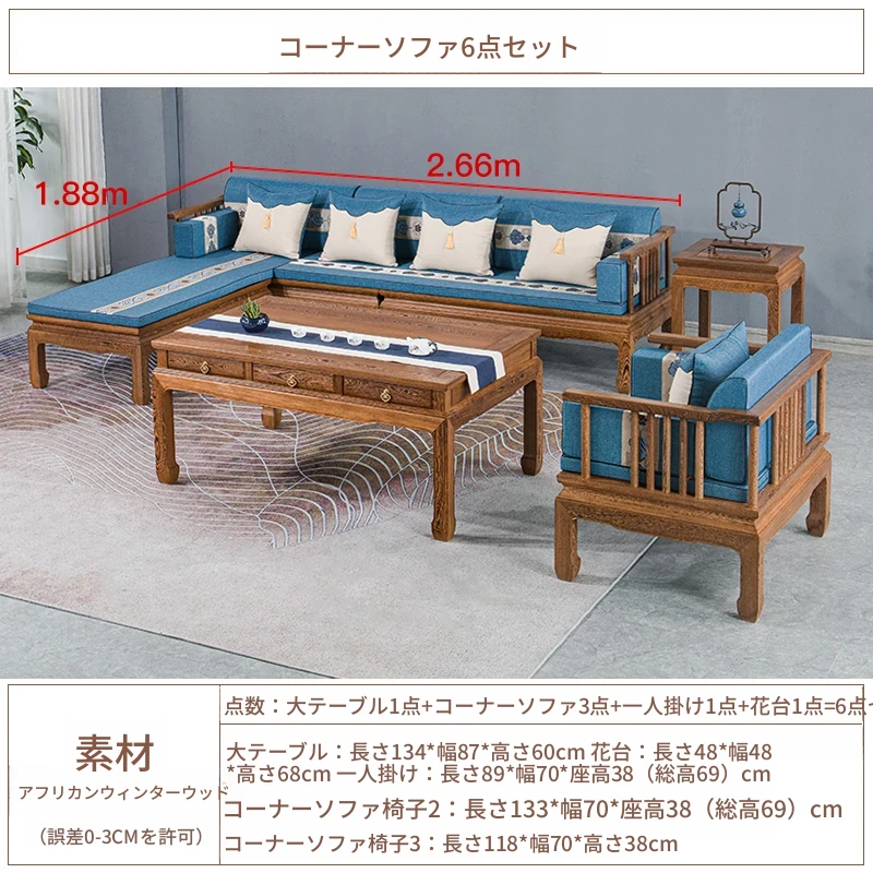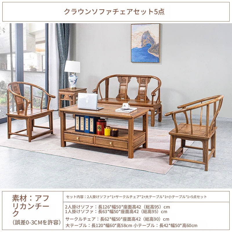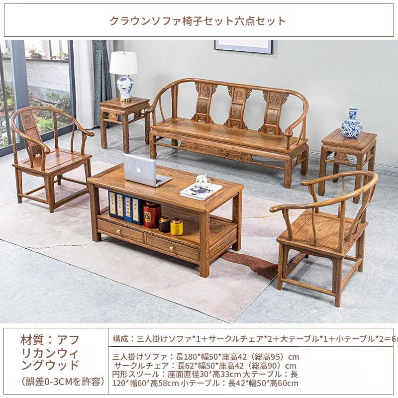 新しい皇宮椅子ソファ113六点セット(ダブル引き出しテーブル付き)