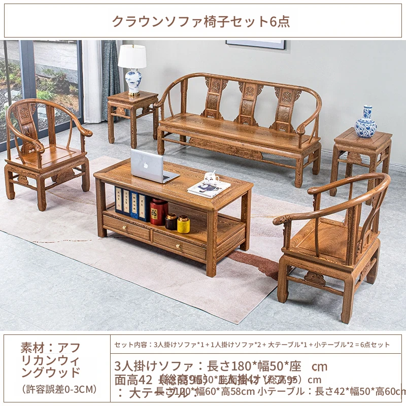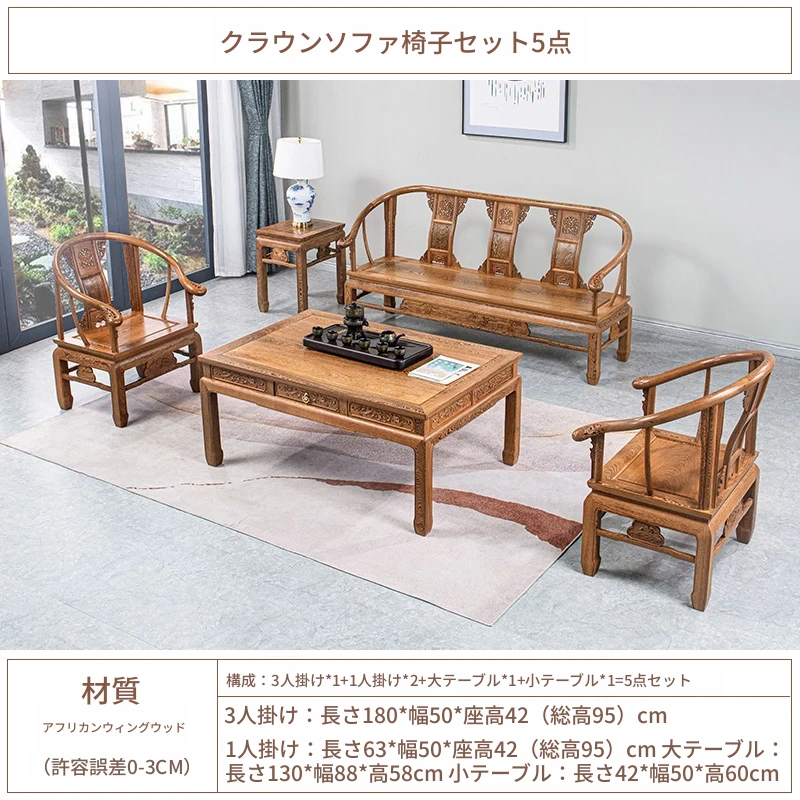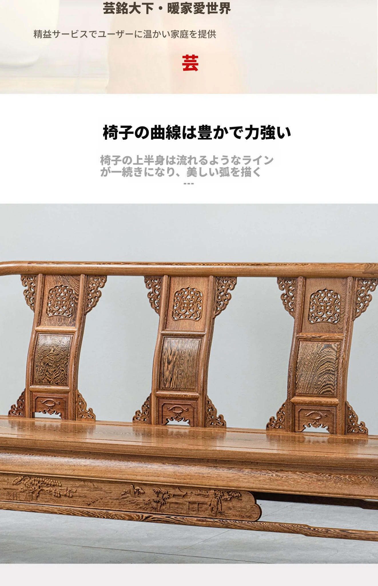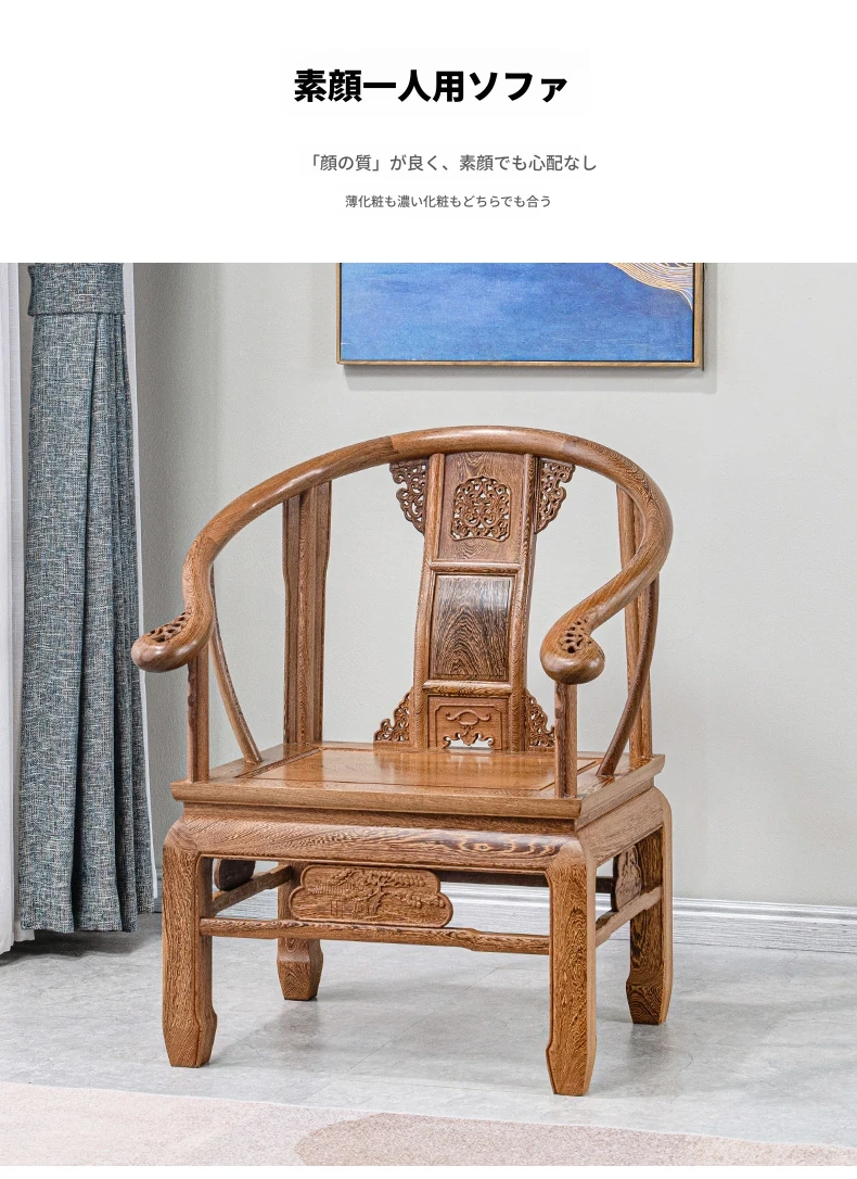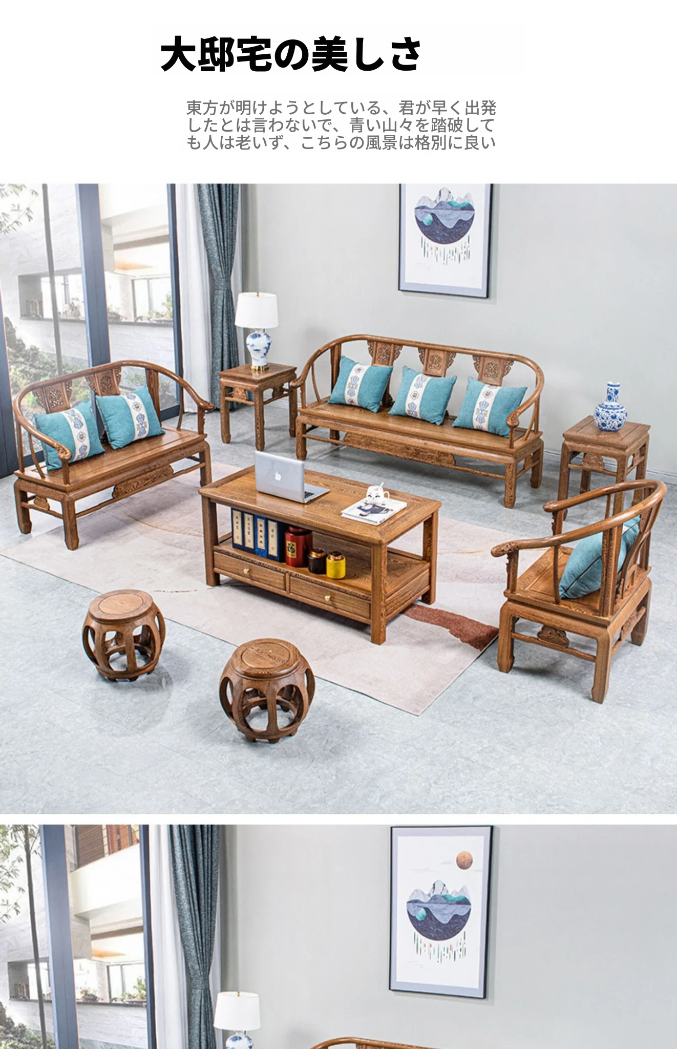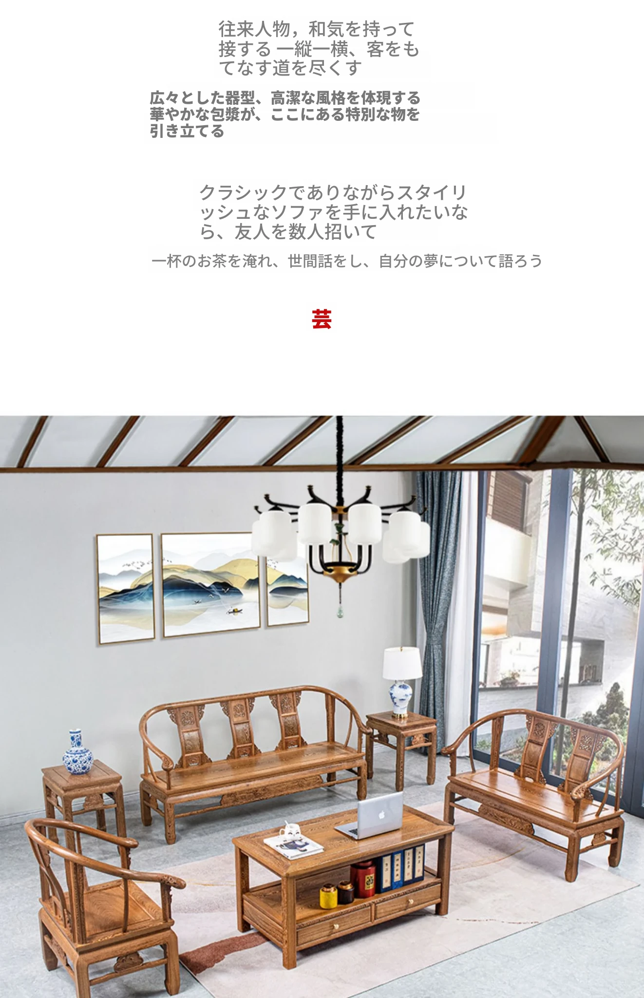 芸铭天下 チキンウィングウッドソファ 新中式 アンティークスタイル 全実木紅木サークルチェア コンパクトな小型住宅向け 統一セットでお届け!高級感あふれるデザインで、リラックスしたひとときを演出します。