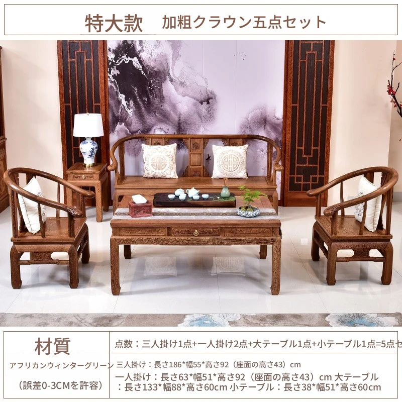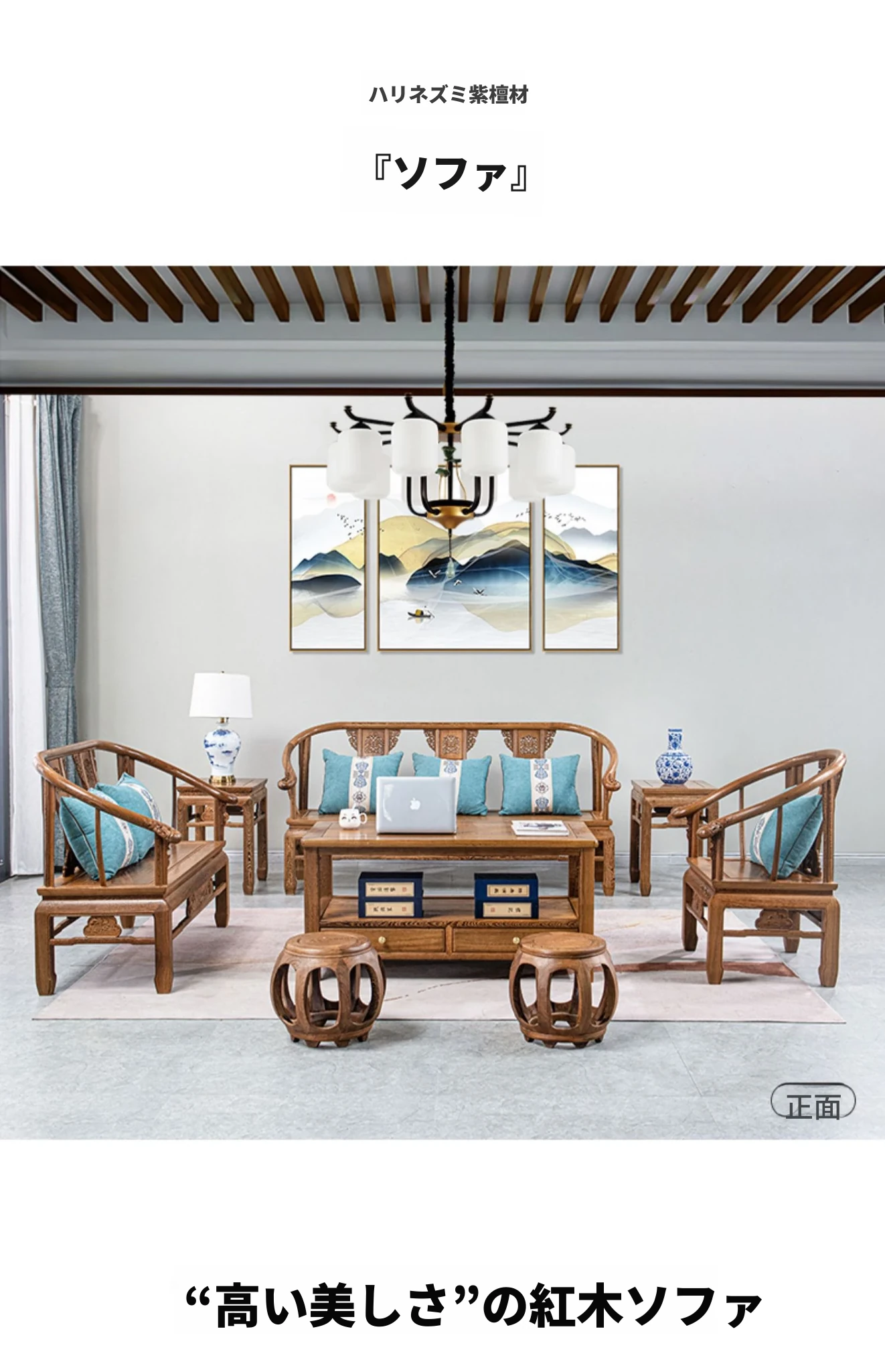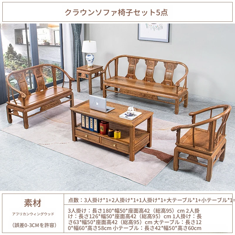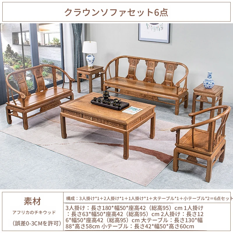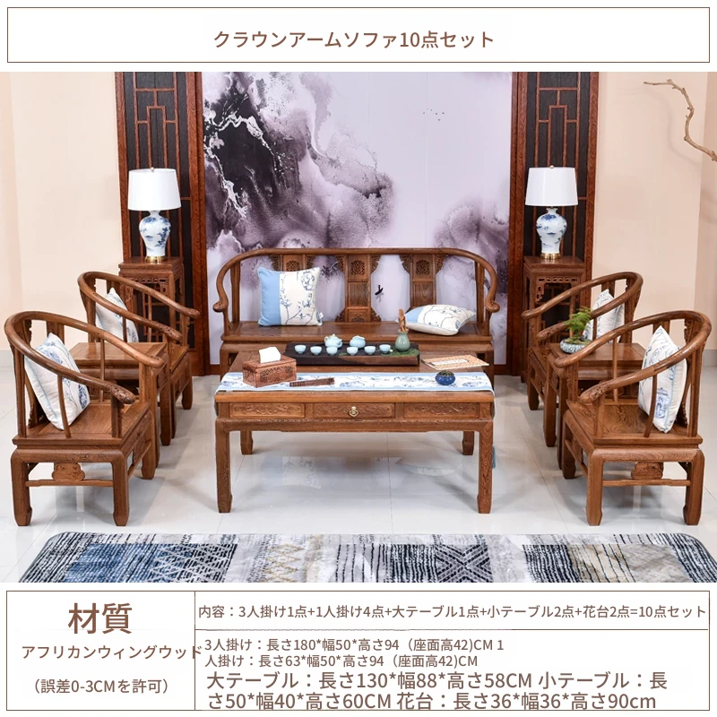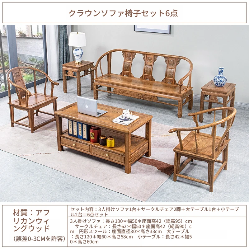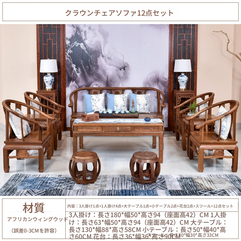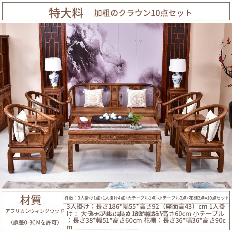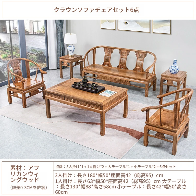 芸铭天下 チキンウィングウッドソファ 新中式 アンティークスタイル 全実木紅木サークルチェア コンパクトな小型住宅向け 統一セットでお届け!高級感あふれるデザインで、リラックスしたひとときを演出します。