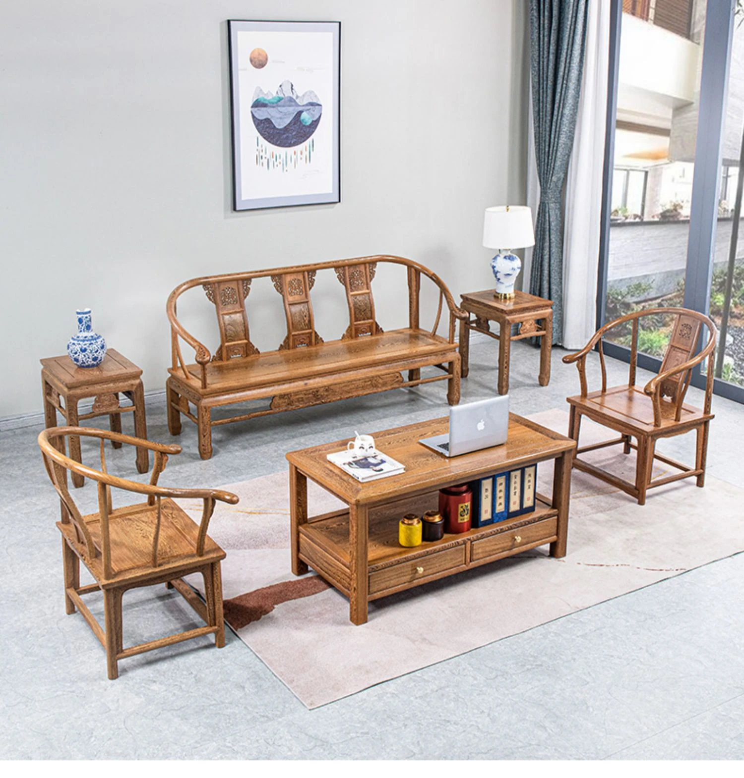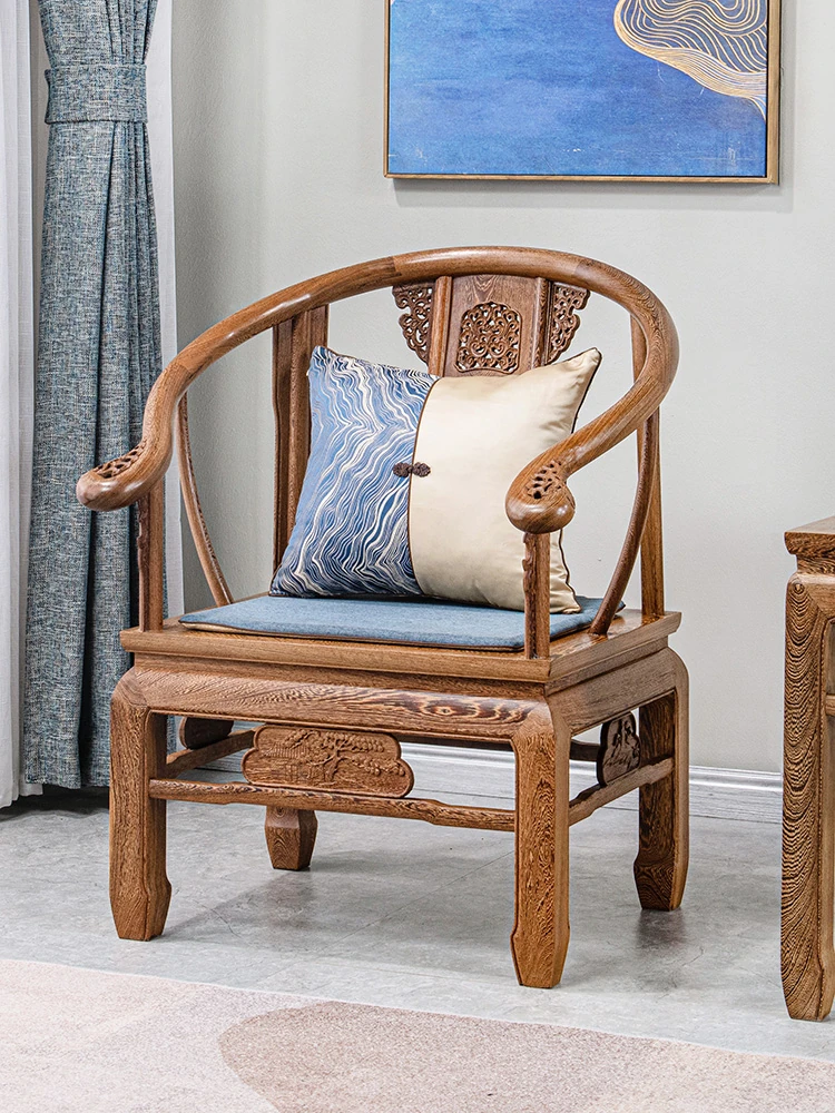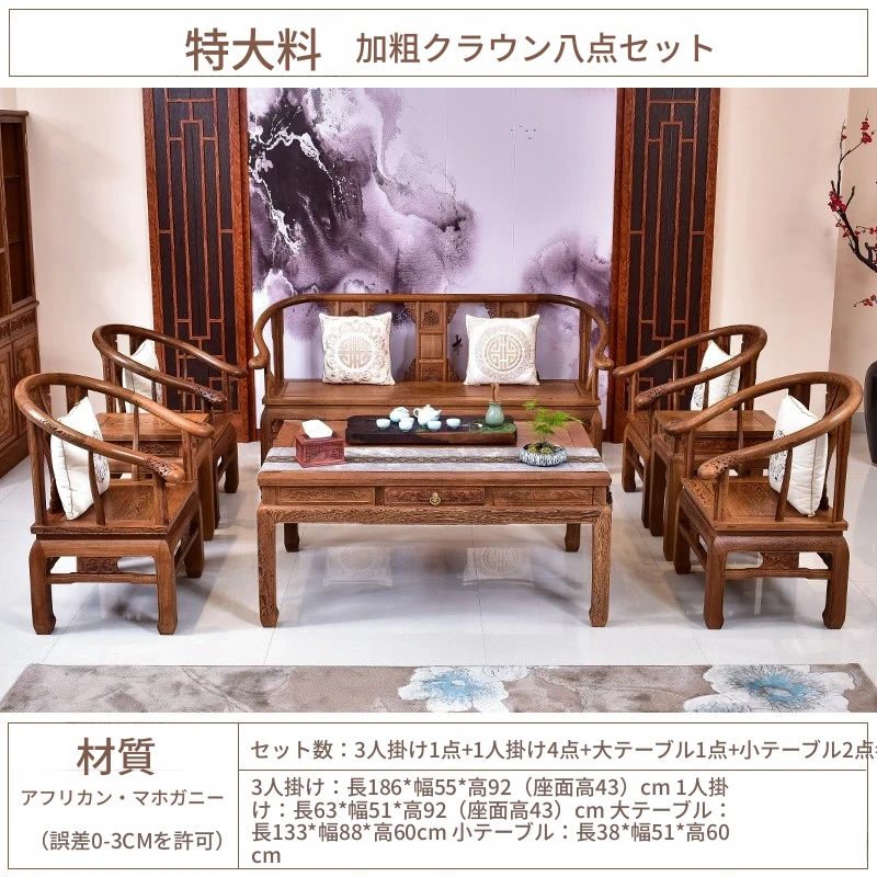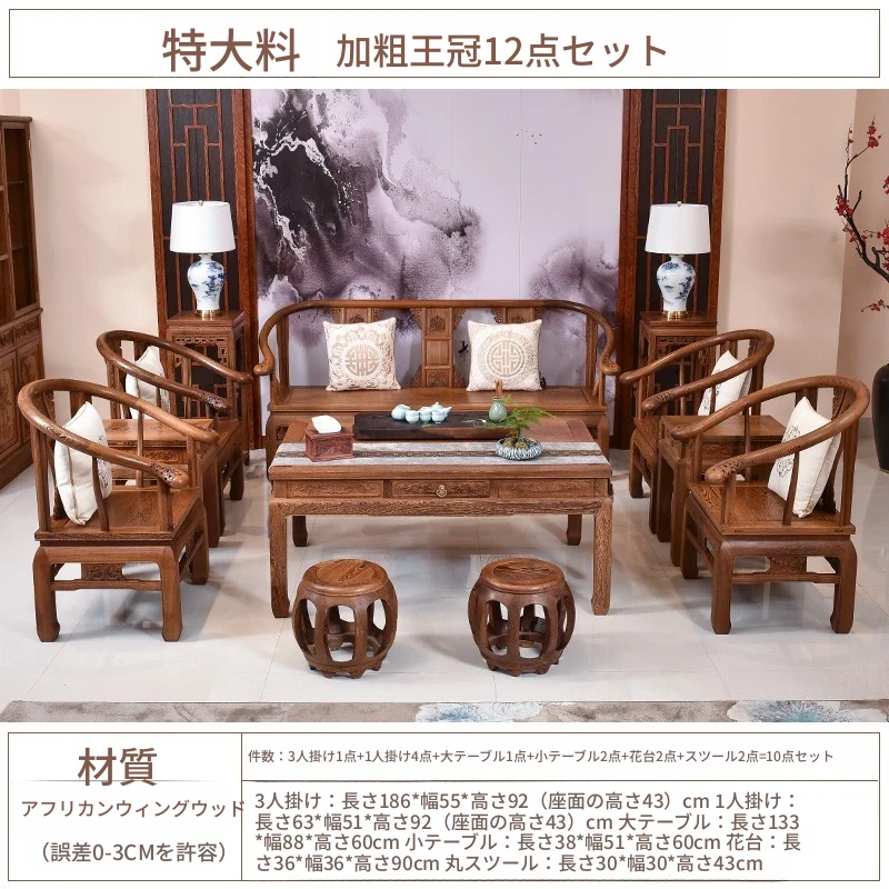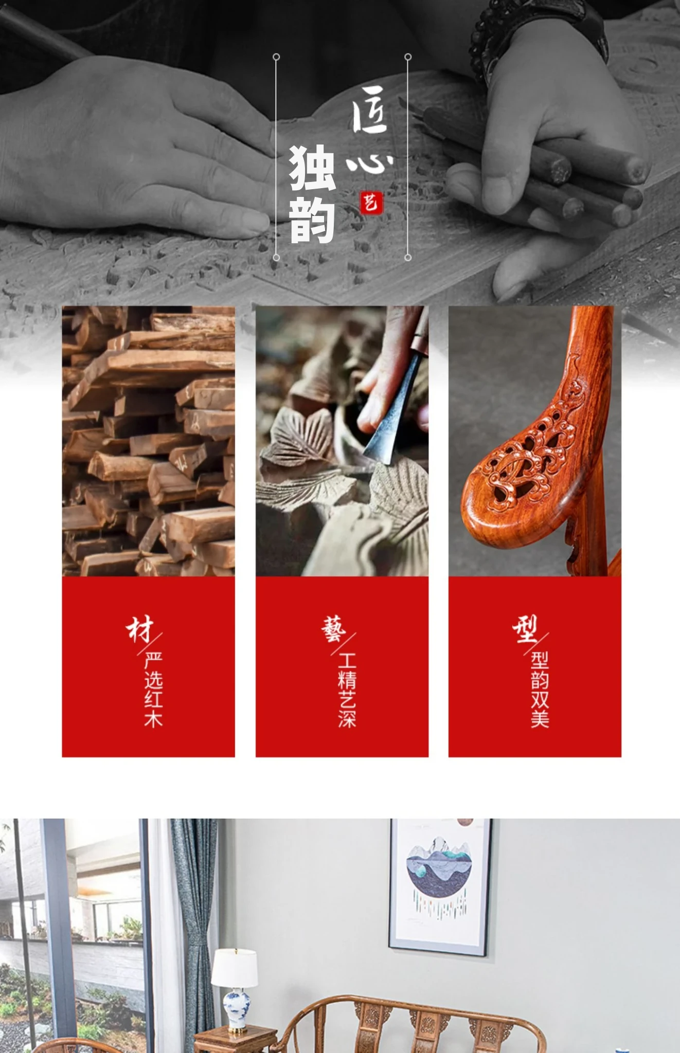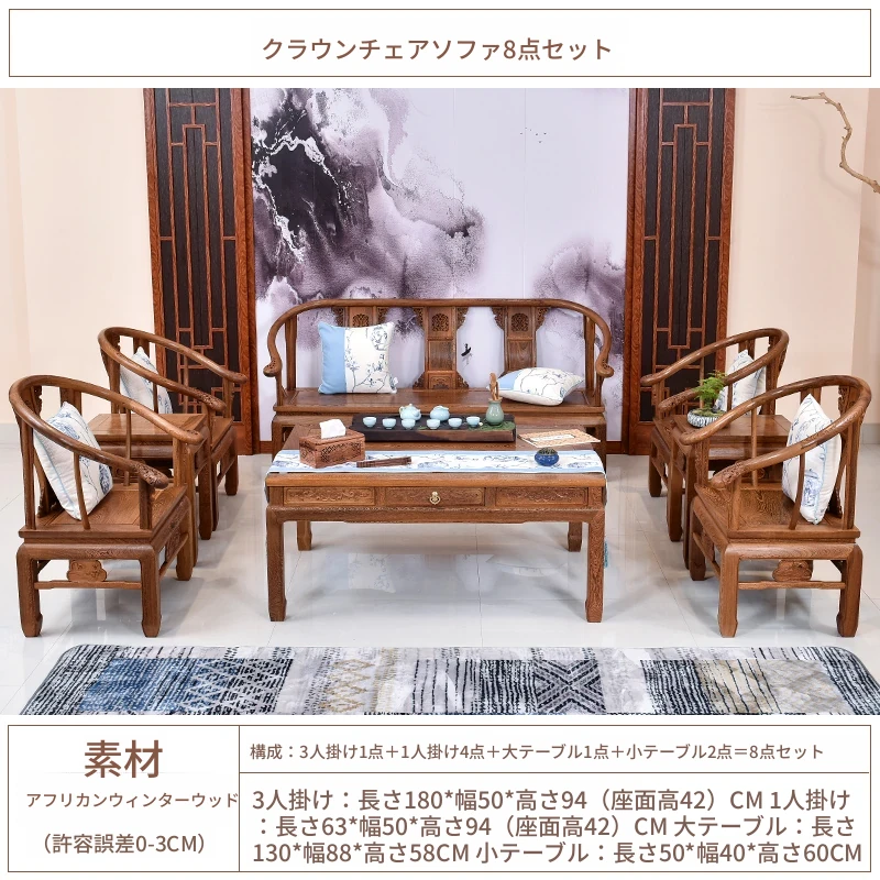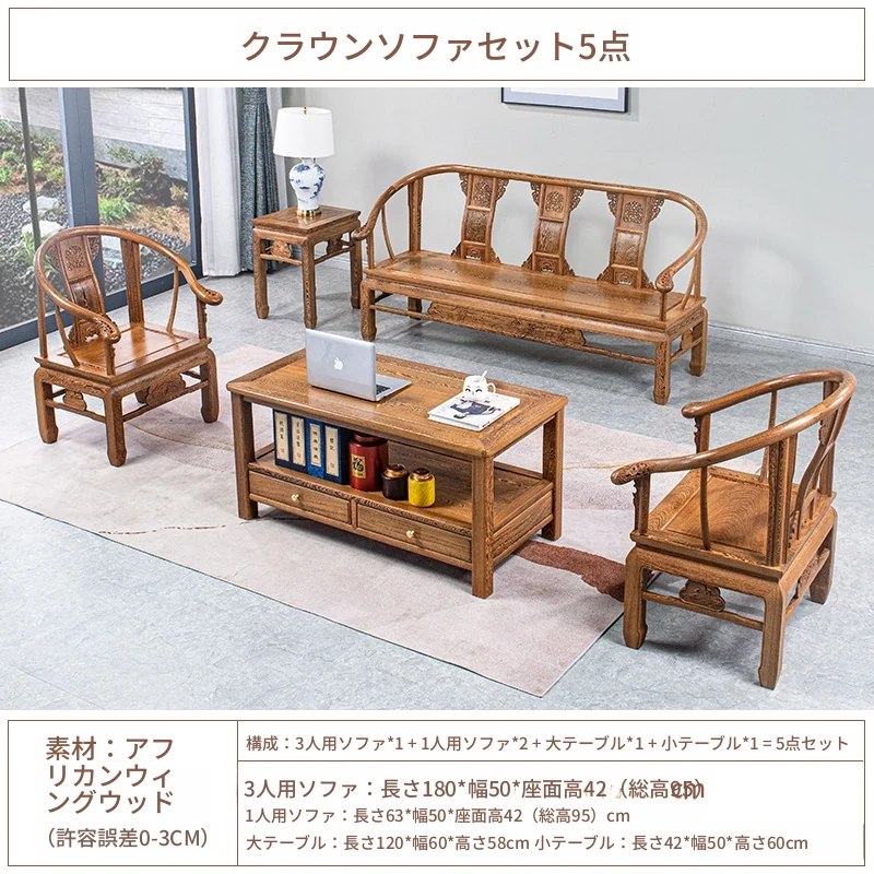 芸铭天下 チキンウィングウッドソファ 新中式 アンティークスタイル 全実木紅木サークルチェア コンパクトな小型住宅向け 統一セットでお届け!高級感あふれるデザインで、リラックスしたひとときを演出します。