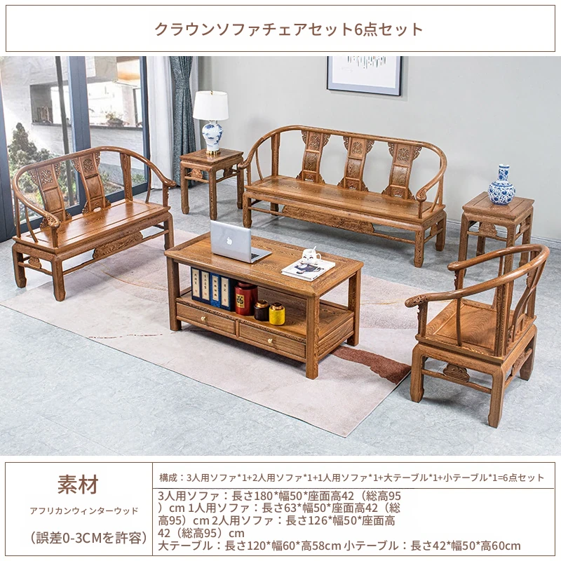 新型113クラウンチェアソファ6点セット(クラウン大コーヒーテーブル付き)