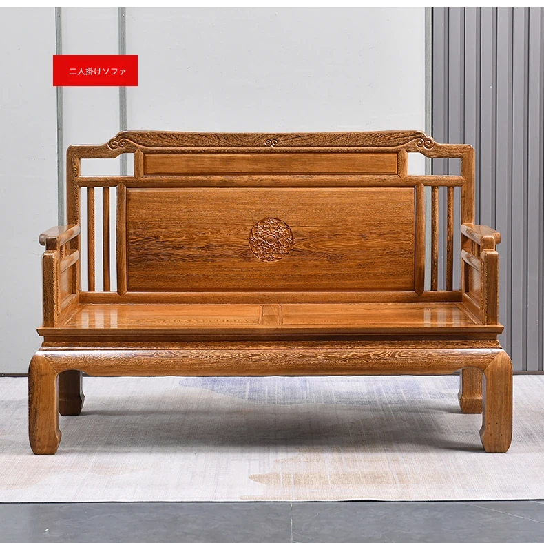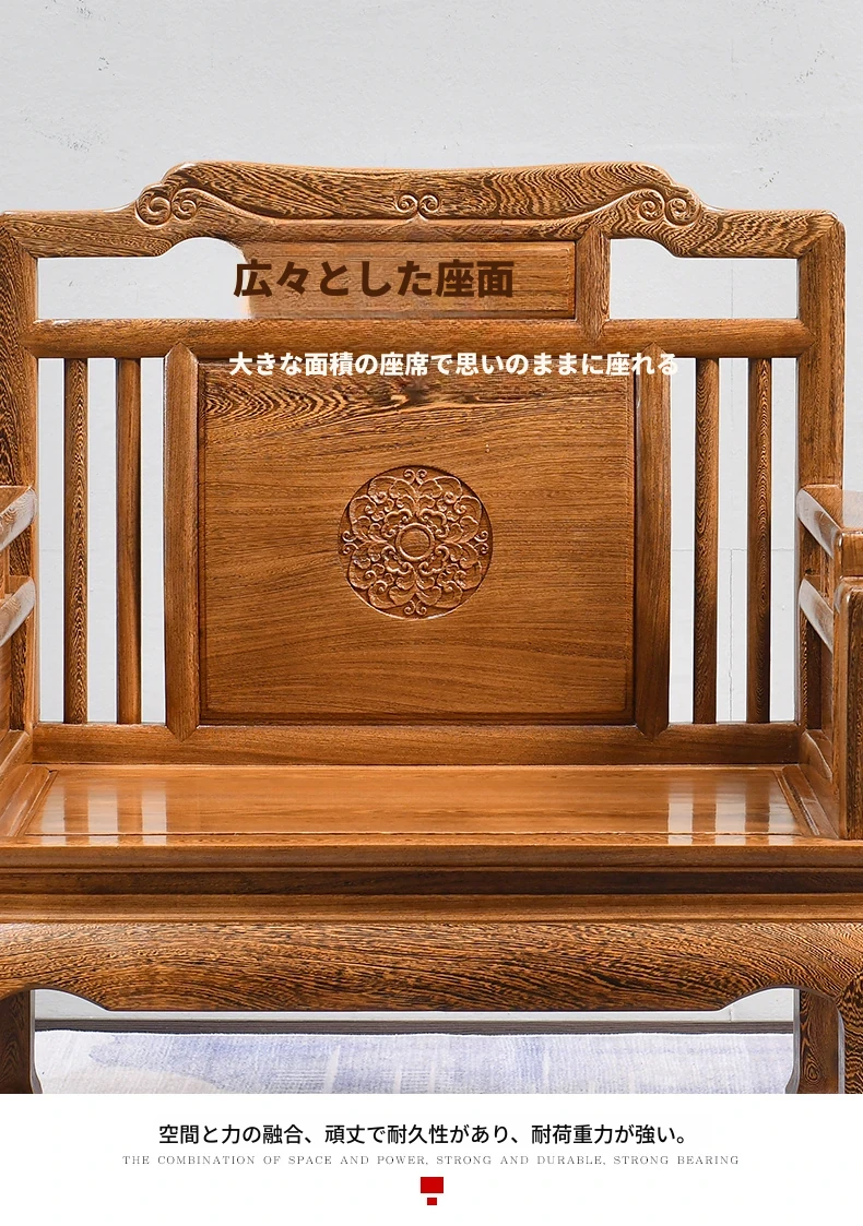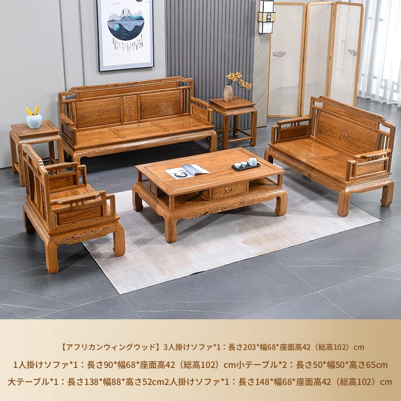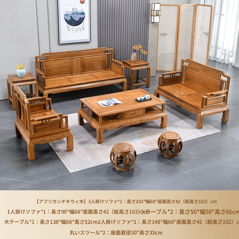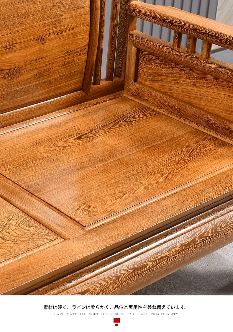 芸铭天下の新中式軽奢チークウッドソファ3人掛け - Zenスタイルのヴィラ家具、全て無垢材使用で贅沢な寛ぎを提供!