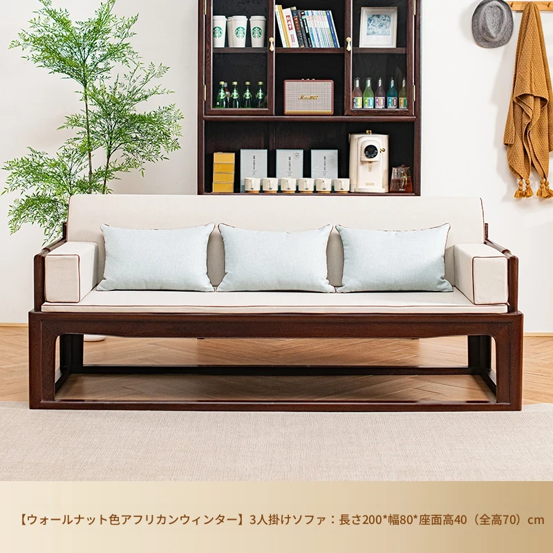 3人掛け 長さ200幅80座面高40(総高70)cmウォールナット色(クッション付き)
