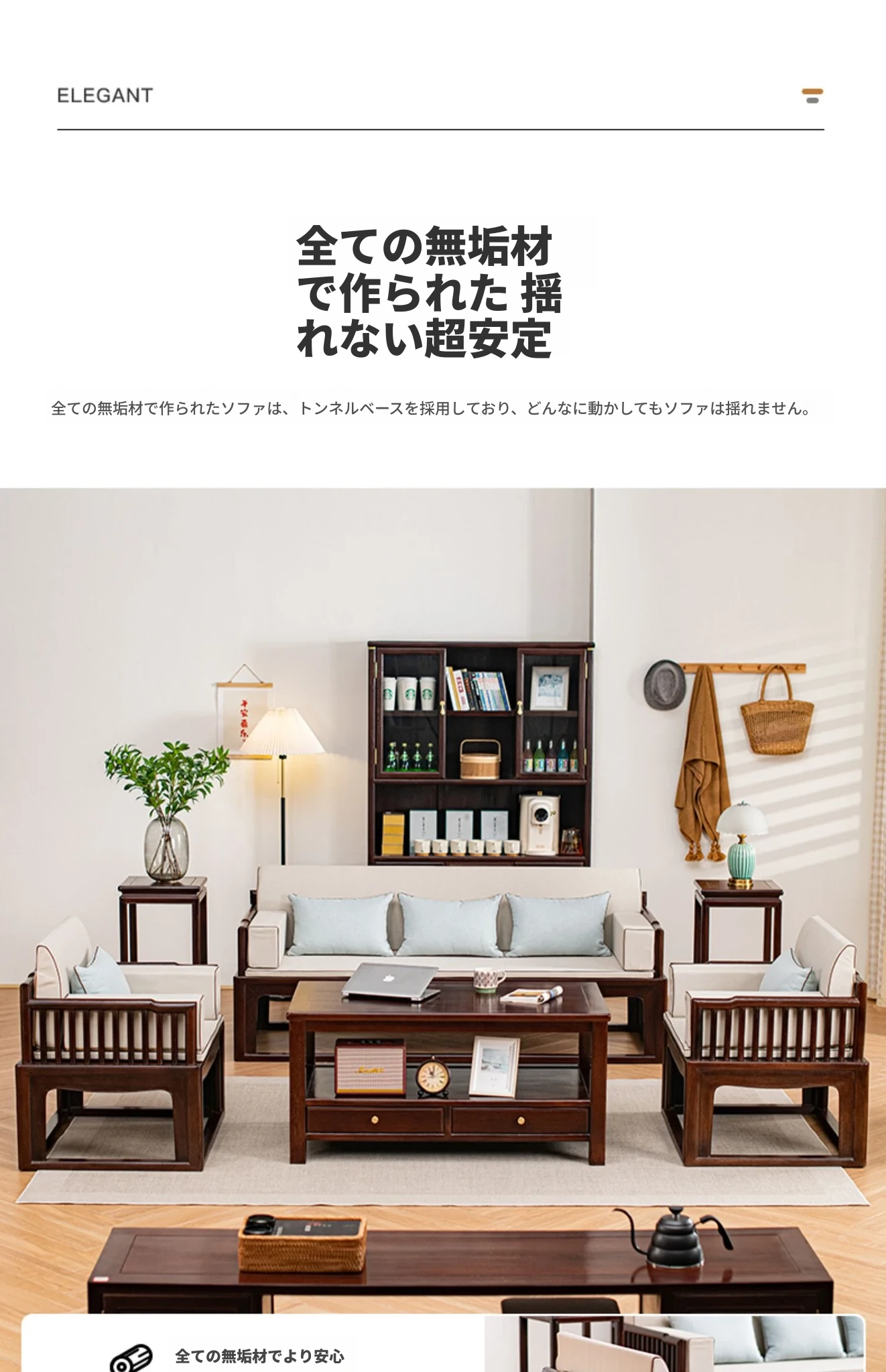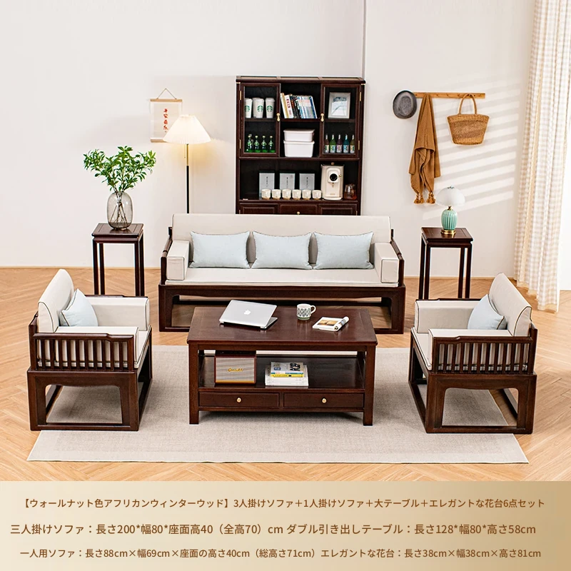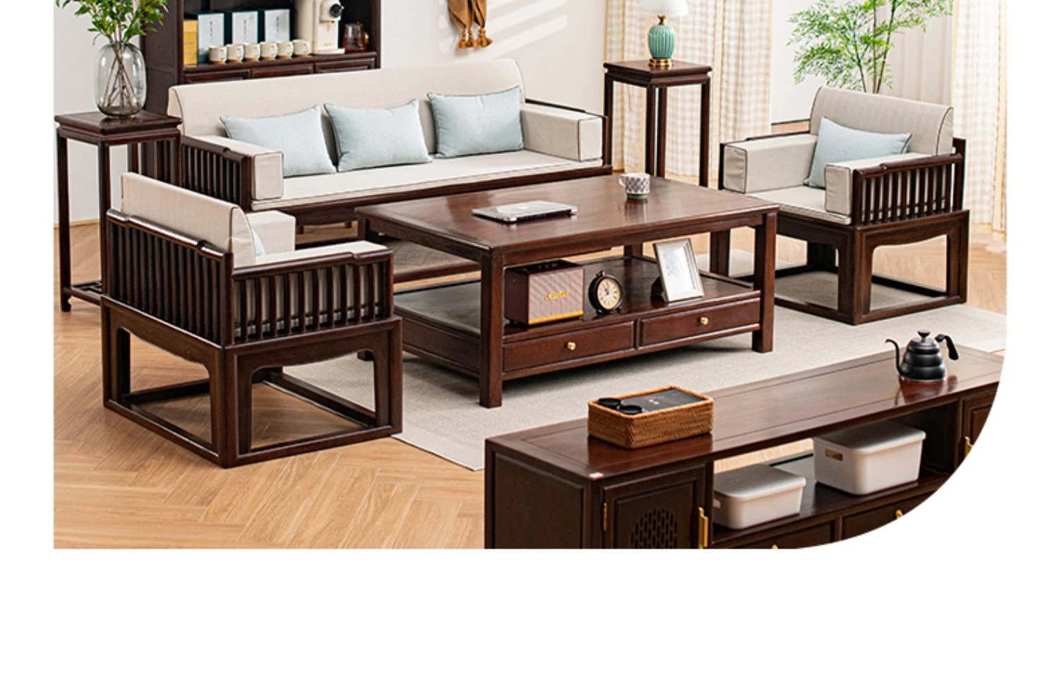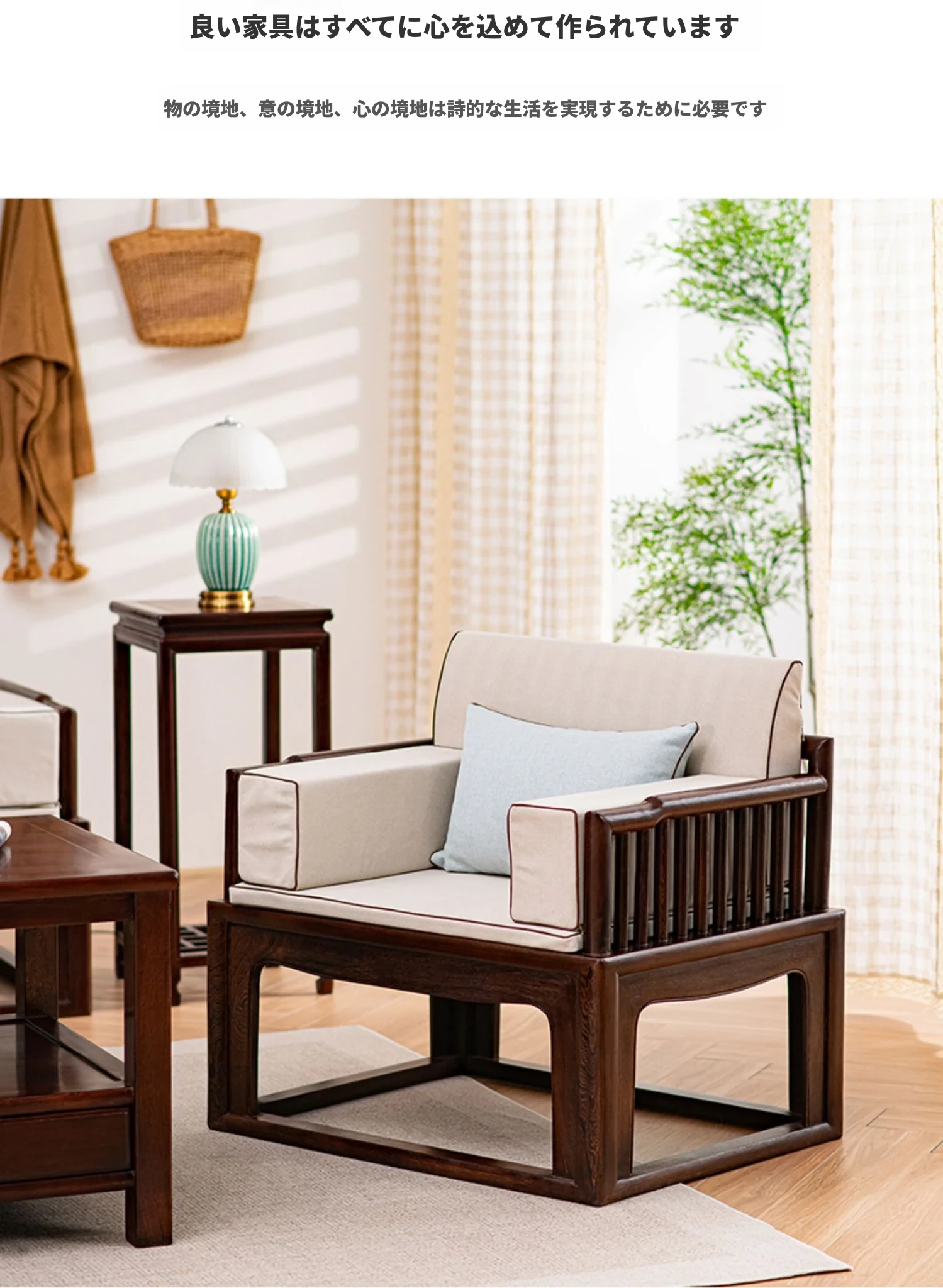 藝铭天下の紅木家具、チキンウィングウッドソファとブラックウォールナット色のソファ椅子、茶卓セット。新中式の実木造りで、洗練されたデザインと高級感を兼ね備えたお部屋にぴったりのアイテムです!