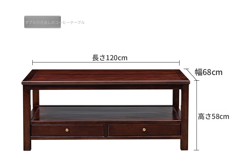 ダブル引き出し茶卓120*68*58cm(ウォールナット色)