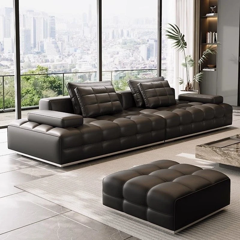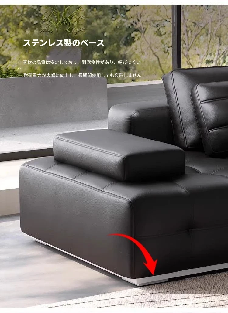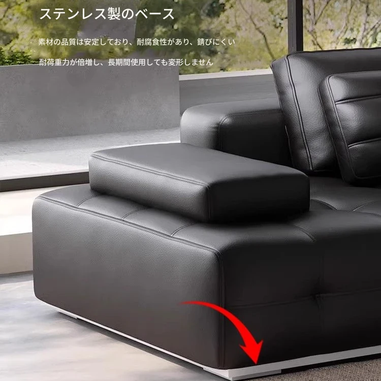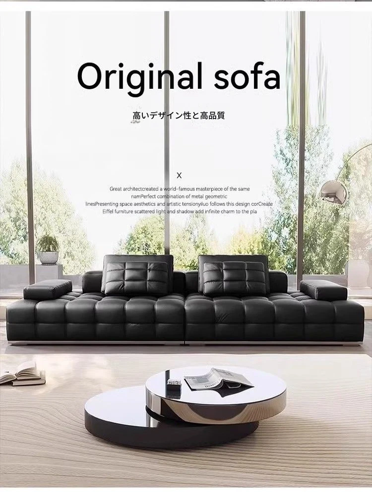 ユンラン ローレンスソファ イタリアンミニマリズム 本革リビングルーム用ラグジュアリー ブラックレザーソファ ストレートデザインで洗練された空間を演出!