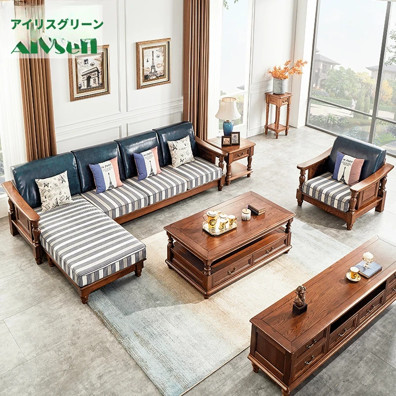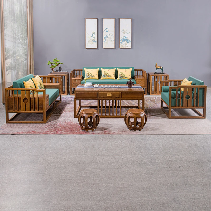 ウルキン材の無垢材ソファセット 新中式デザイン 軽奢華なコーナー式カウチ 冬夏兼用 リビングに最適なサイズ展開 家具の新たなスタイルを提案します!
