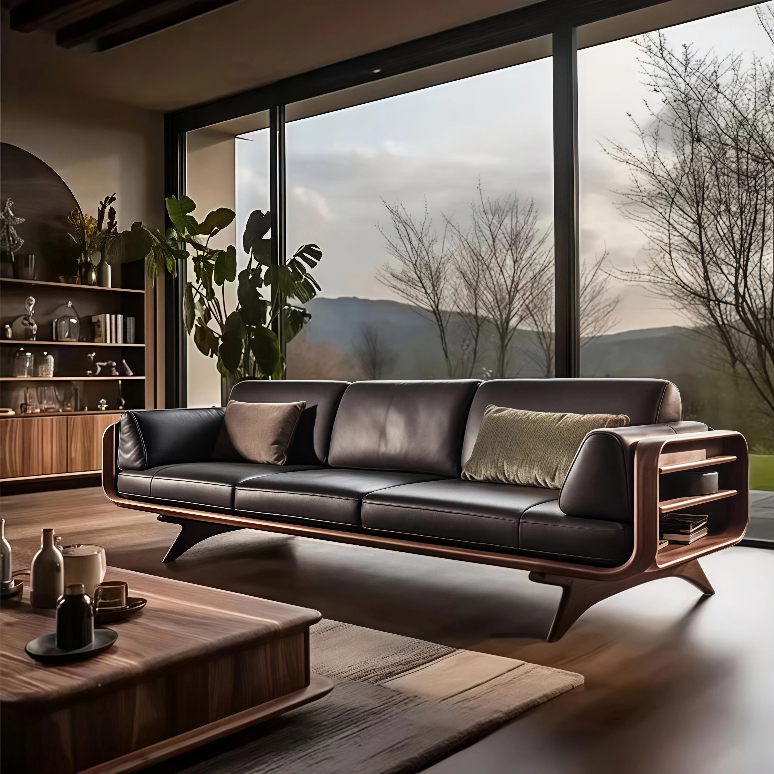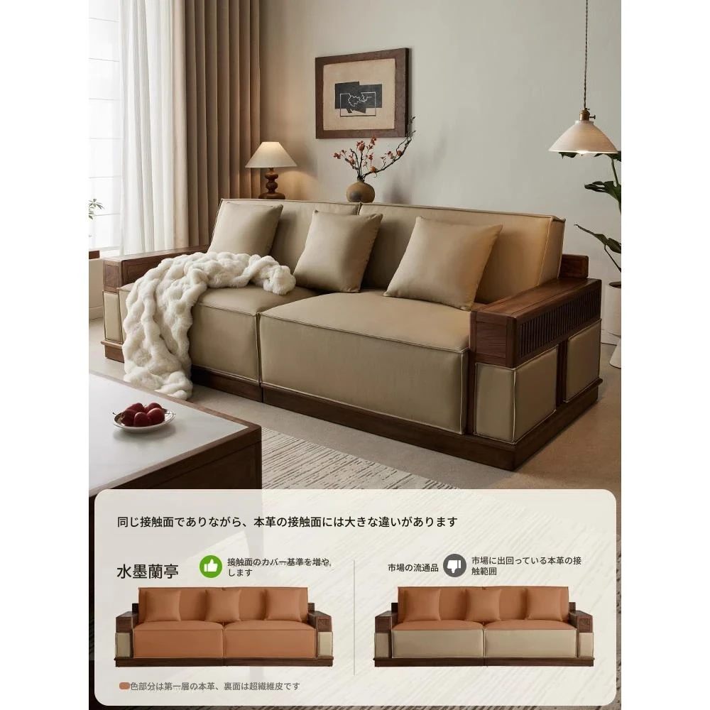 北米ブラックウォールナット製ソファ 新中式デザイン 大型向け 宋風美学 リビング用 本革ソファ 2025年最新モデル