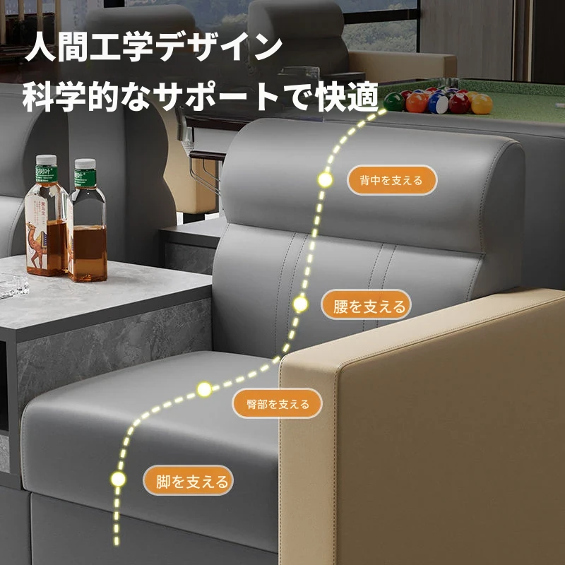 新作!高級ビリヤードソファ&観戦チェアの2人用セット - スタイリッシュなデザインで、3人までのビリヤードホールの休憩に最適!快適な座り心地で、試合を楽しむための最高の選択です。