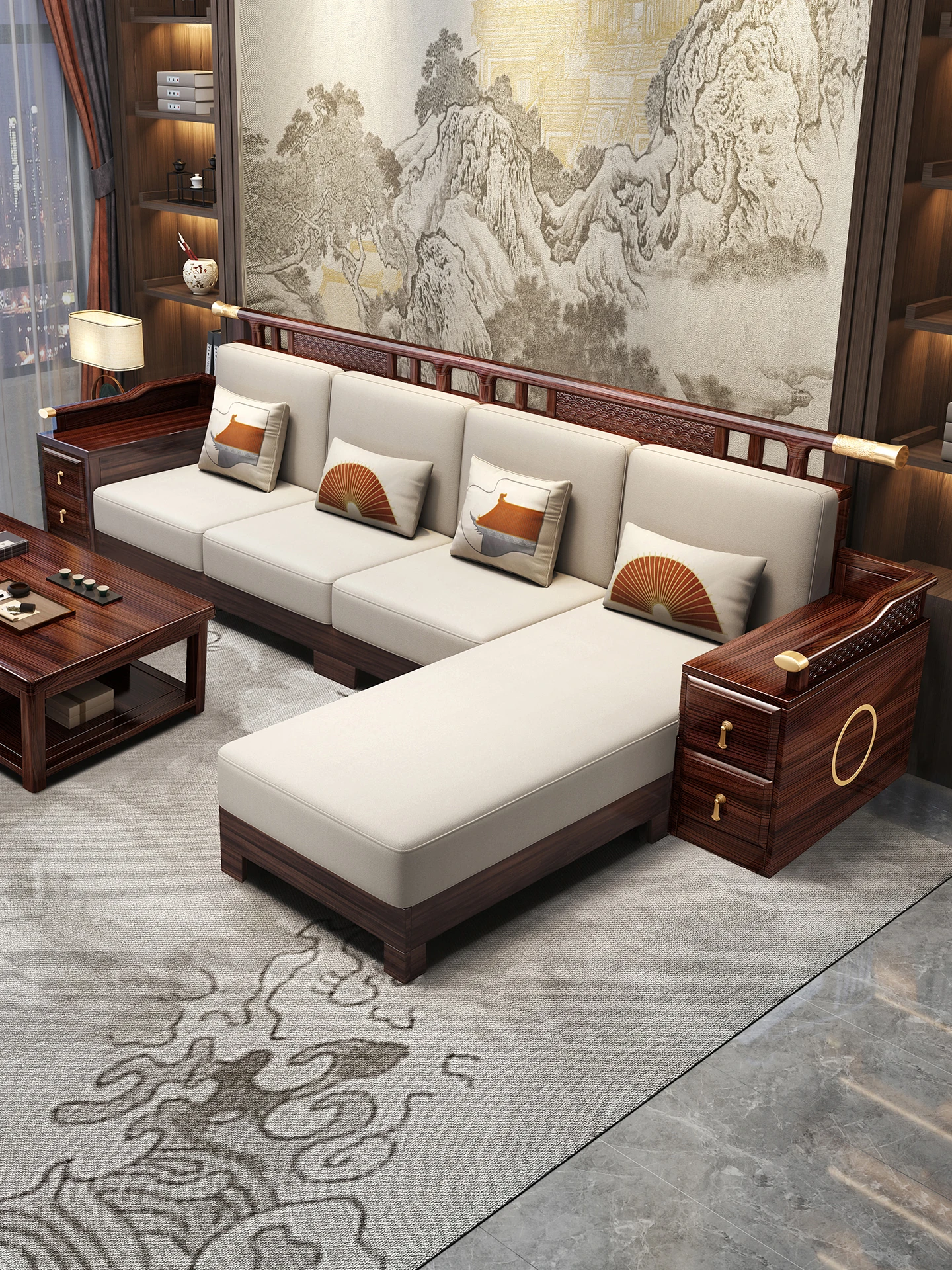新中式紫金檀の無垢材使用!シンプルでモダンなデザインの収納付きリビングソファ。大小の部屋に最適なコーナー木製家具で、エレガントな空間を演出します!