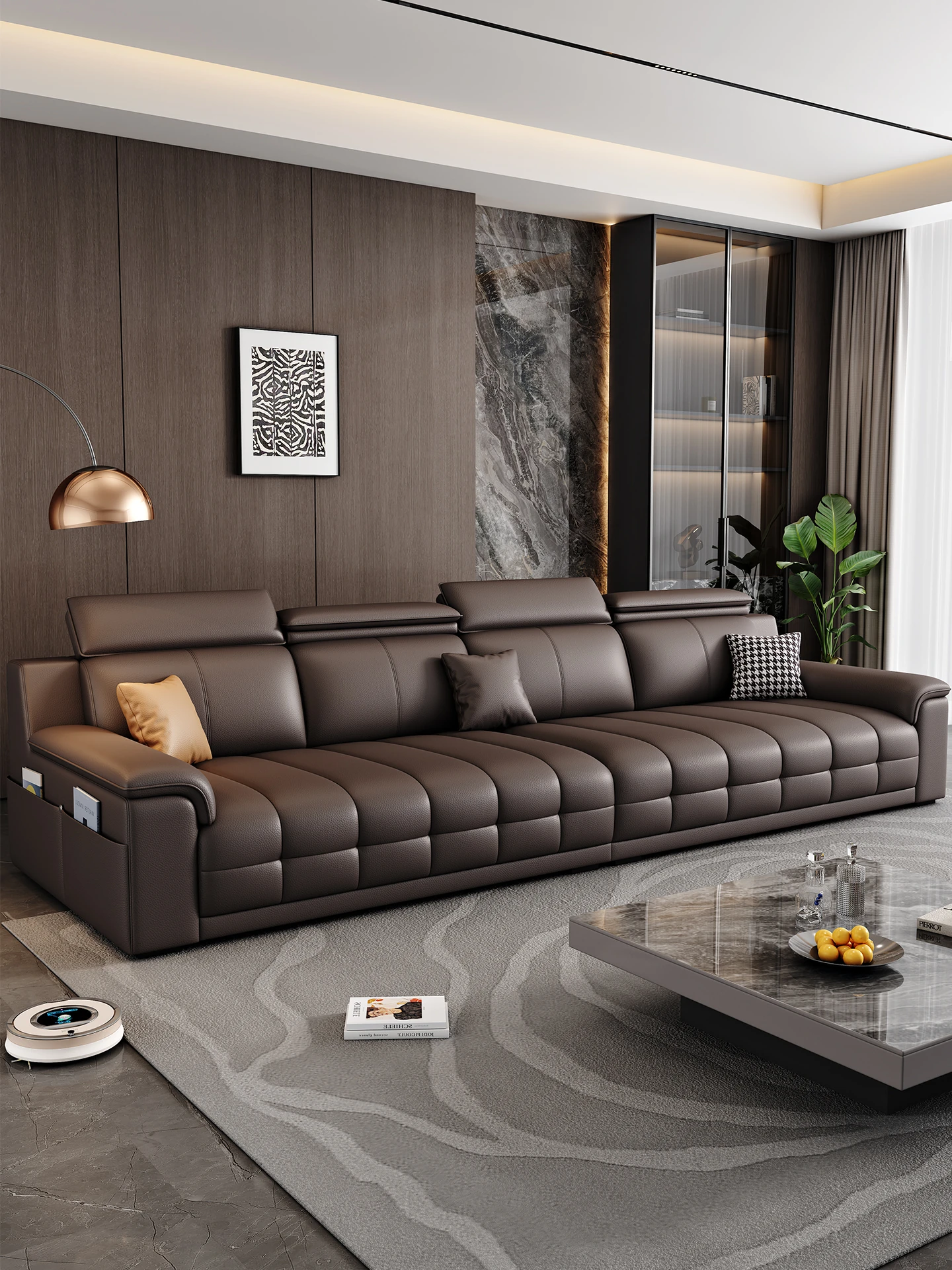 Lawrence Genuine Leather Sofa - Minimalist Italian Style, Straight Three-Seater Design for Small Spaces, Latex Cushion Living Room Sofa Set